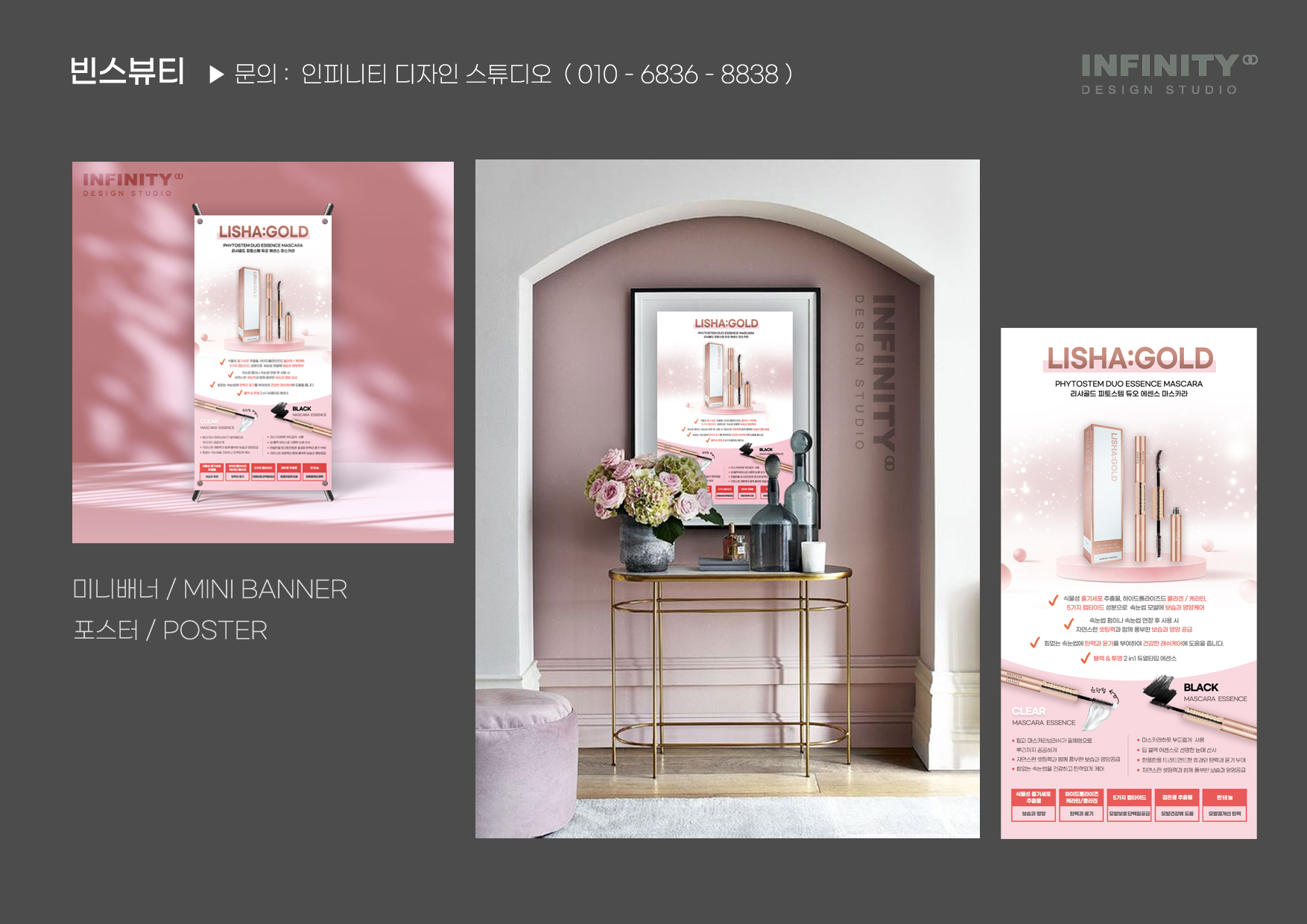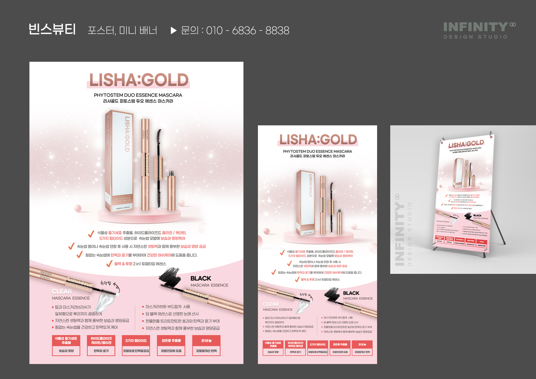 코스메틱 제품 패키지와 포스터, 미니배너를