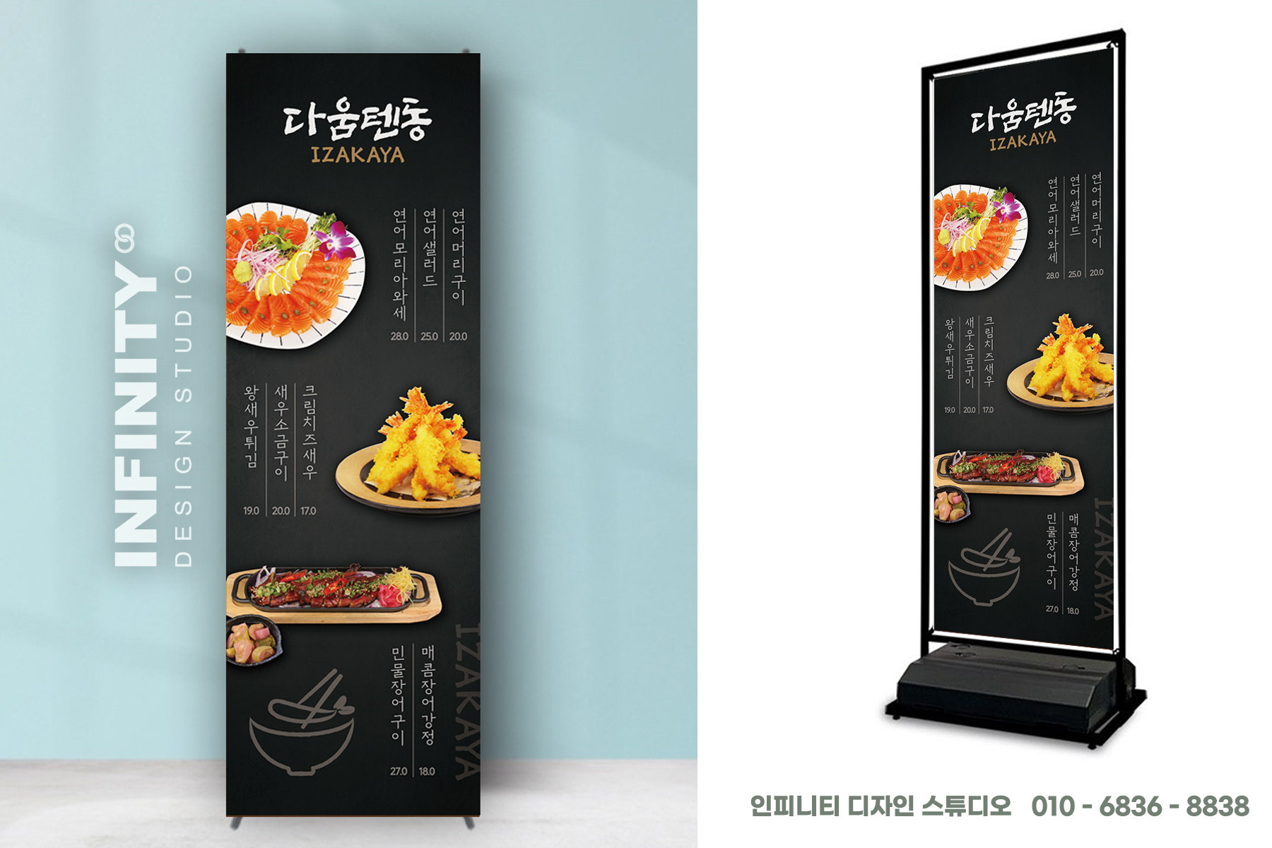 음식점 배너 디자인, X배너 거치대, 배너 출력 인쇄물 제작 전문
