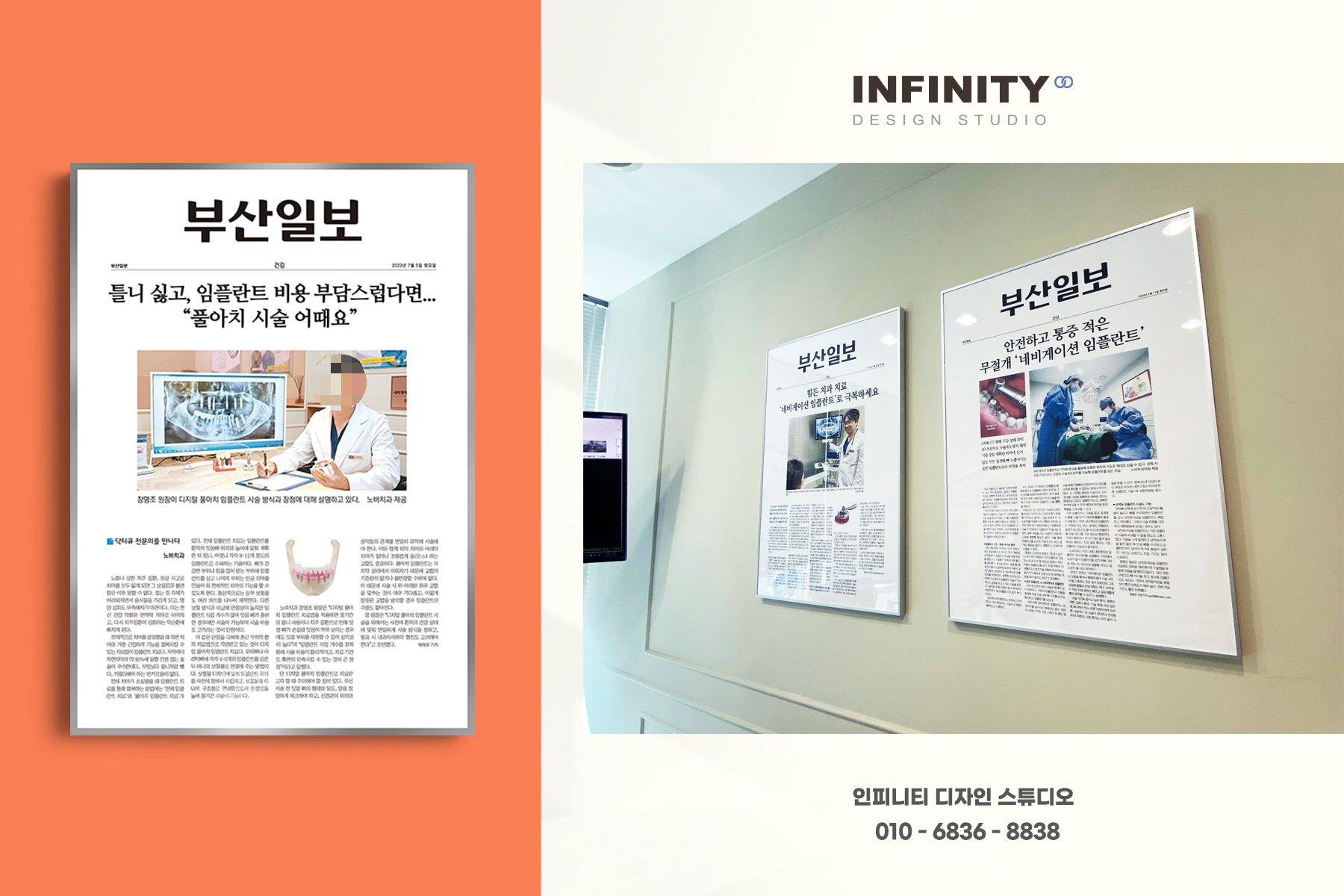 | 병원 인테리어 액자 제작 전문, 신문기사 치과 액자 디자인으로 완성! (1) | 2023.06.16 |