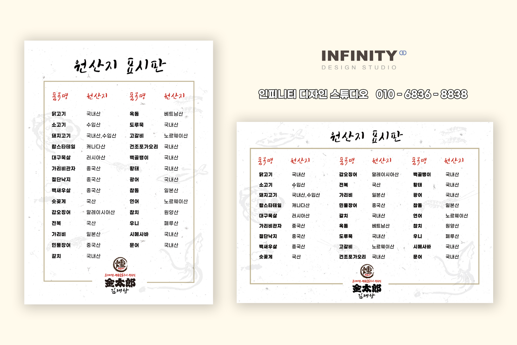 이번에 원산지 표시판도 추가로 주문해주셔서
