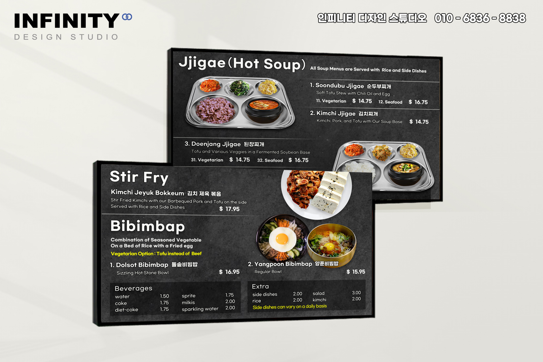 깔끔하면서 통일성 있는 디자인으로 총 4개 메뉴판을