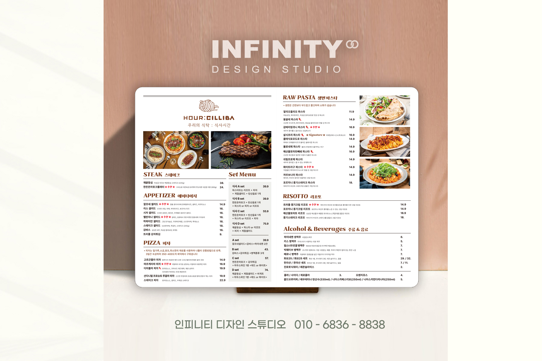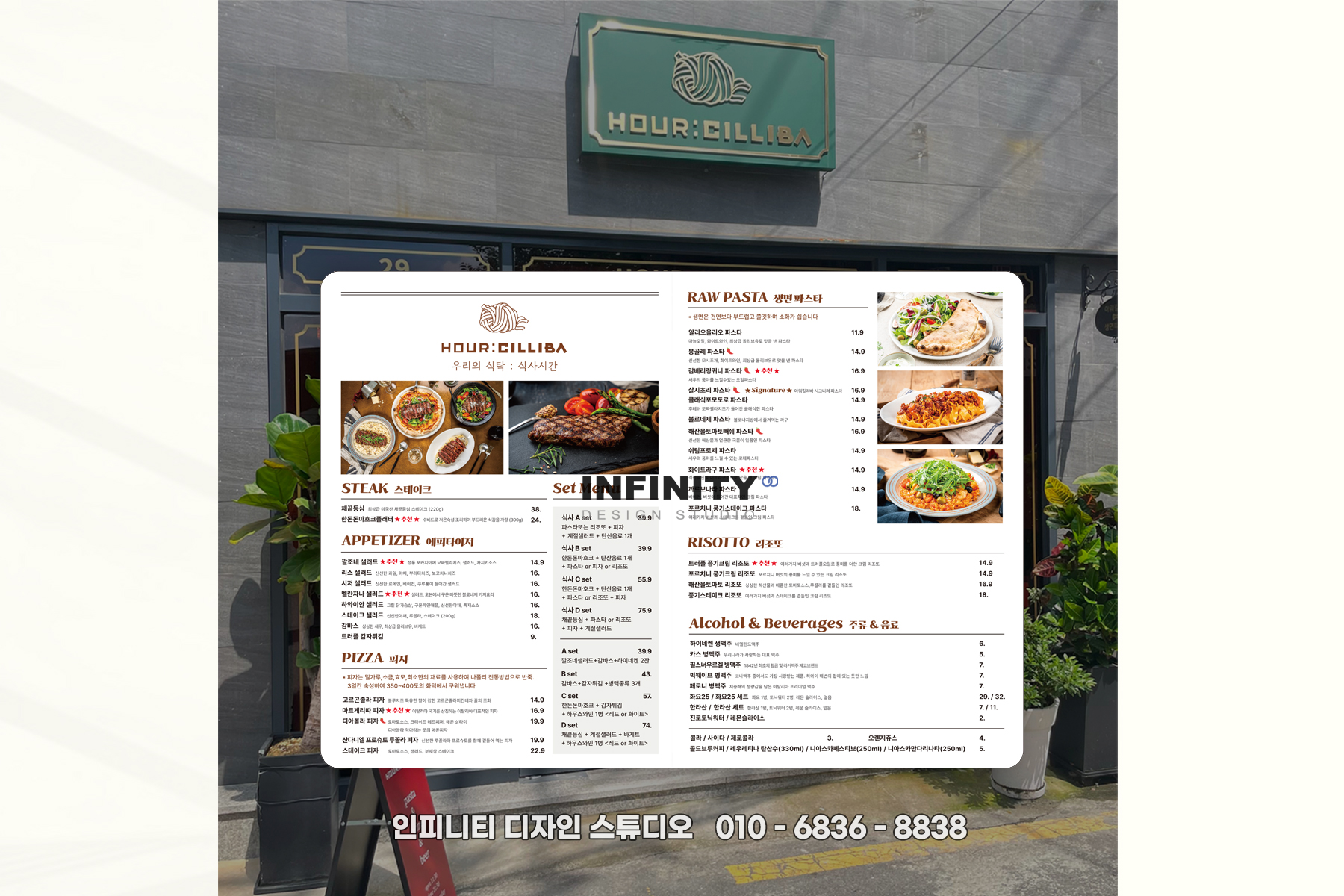 이탈리안 레스토랑 메뉴판 제작,