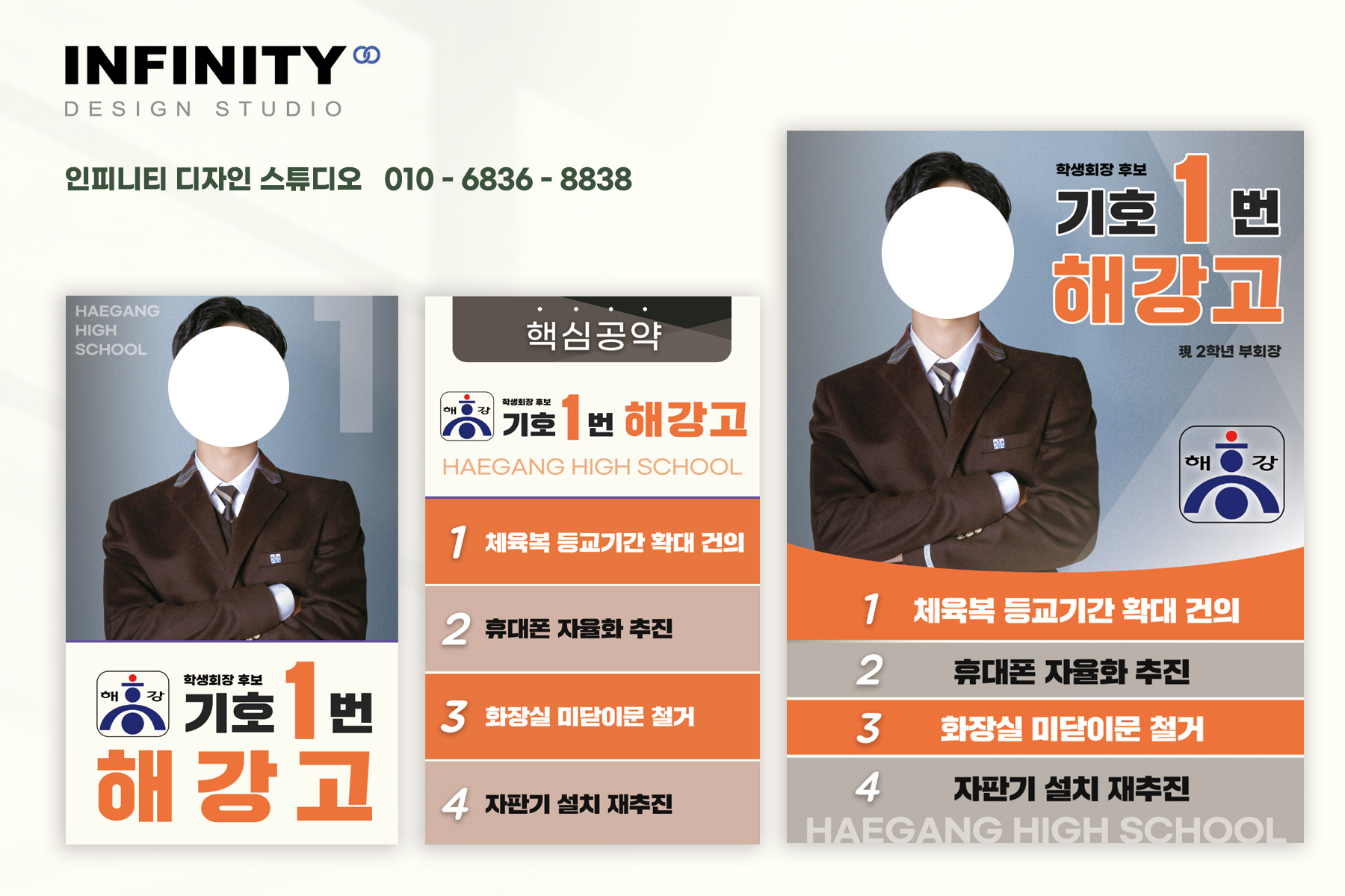 안녕하세요, 💚👍😊 회장선거포스터, 홍보물, 피켓 제작 디자인 전문 인피니티 디자인 스튜디오 입니다. 고등학교 회장선거 포스터 디자인, 제작 요청으로 진행된 이번 포스터, 피켓 작업은
