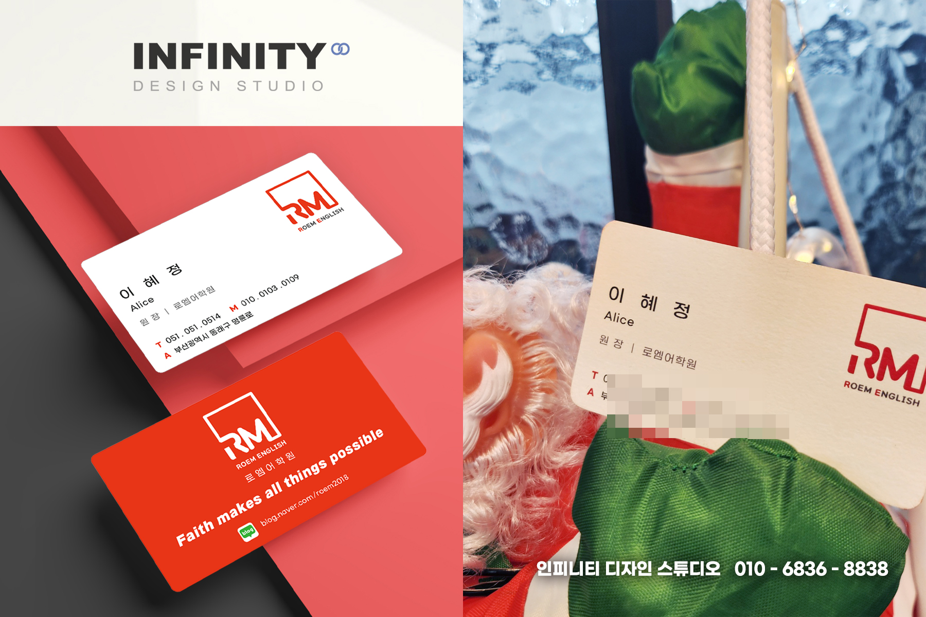 안녕하세요, 명함, 로고 디자인 제작 전문 인피니티 디자인 스튜디오 입니다 :) 어학원 로고 + 원장님 명함, 명함디자인, 라운드 명함 제작 추천~! 오늘은 부산의 교육으로 핫한 동래의 로엠어학