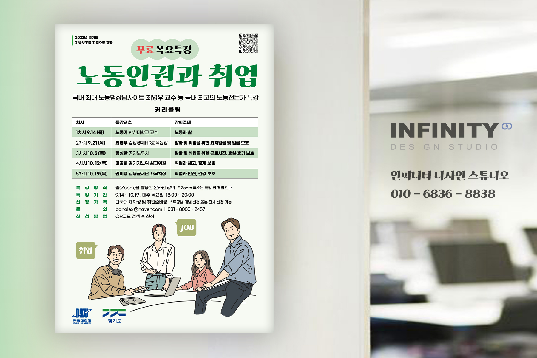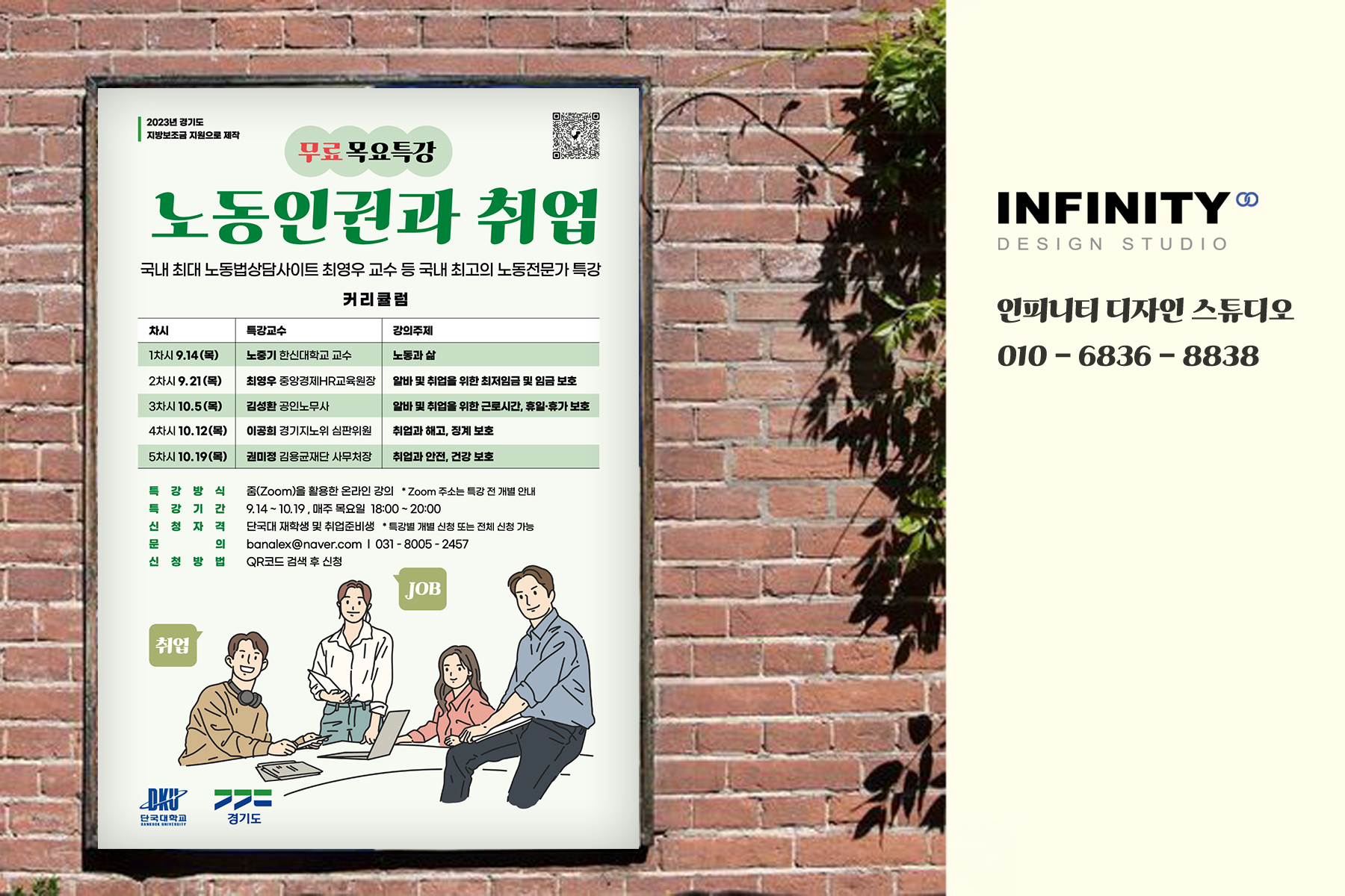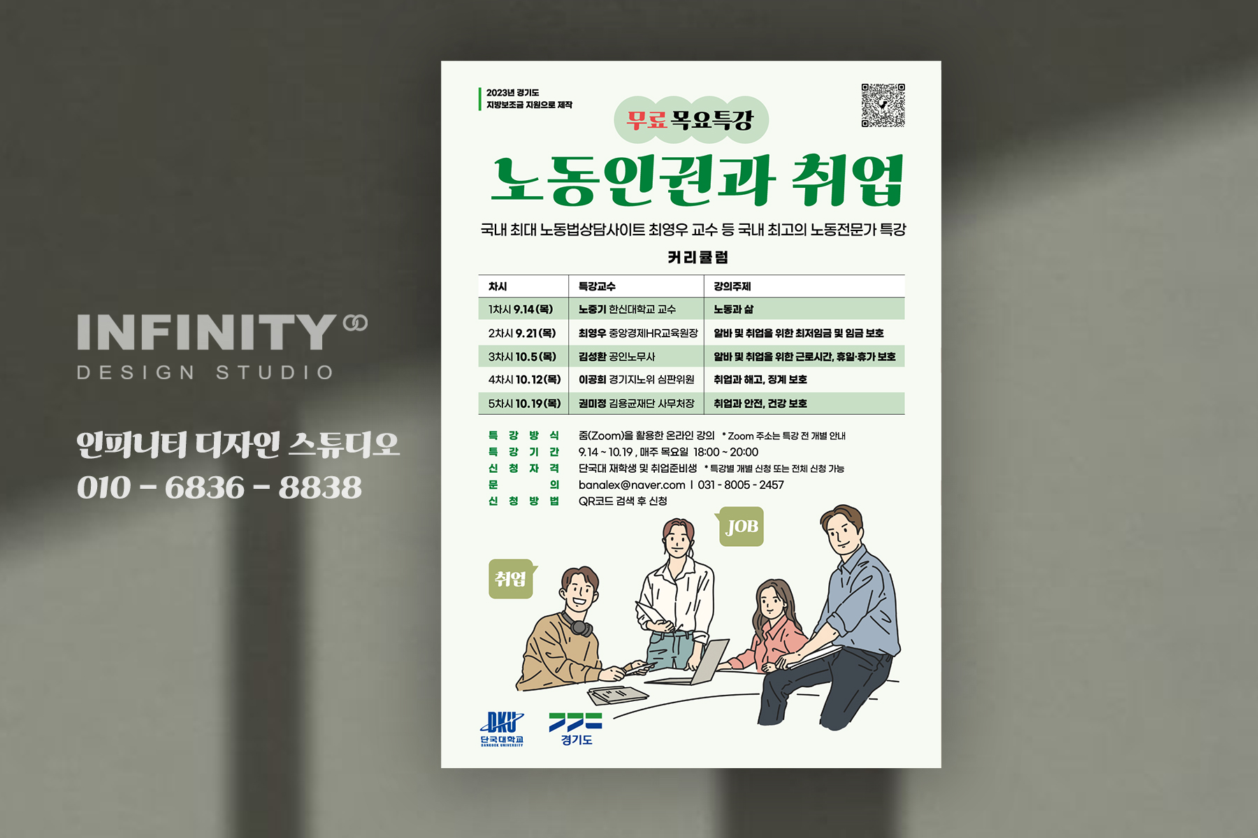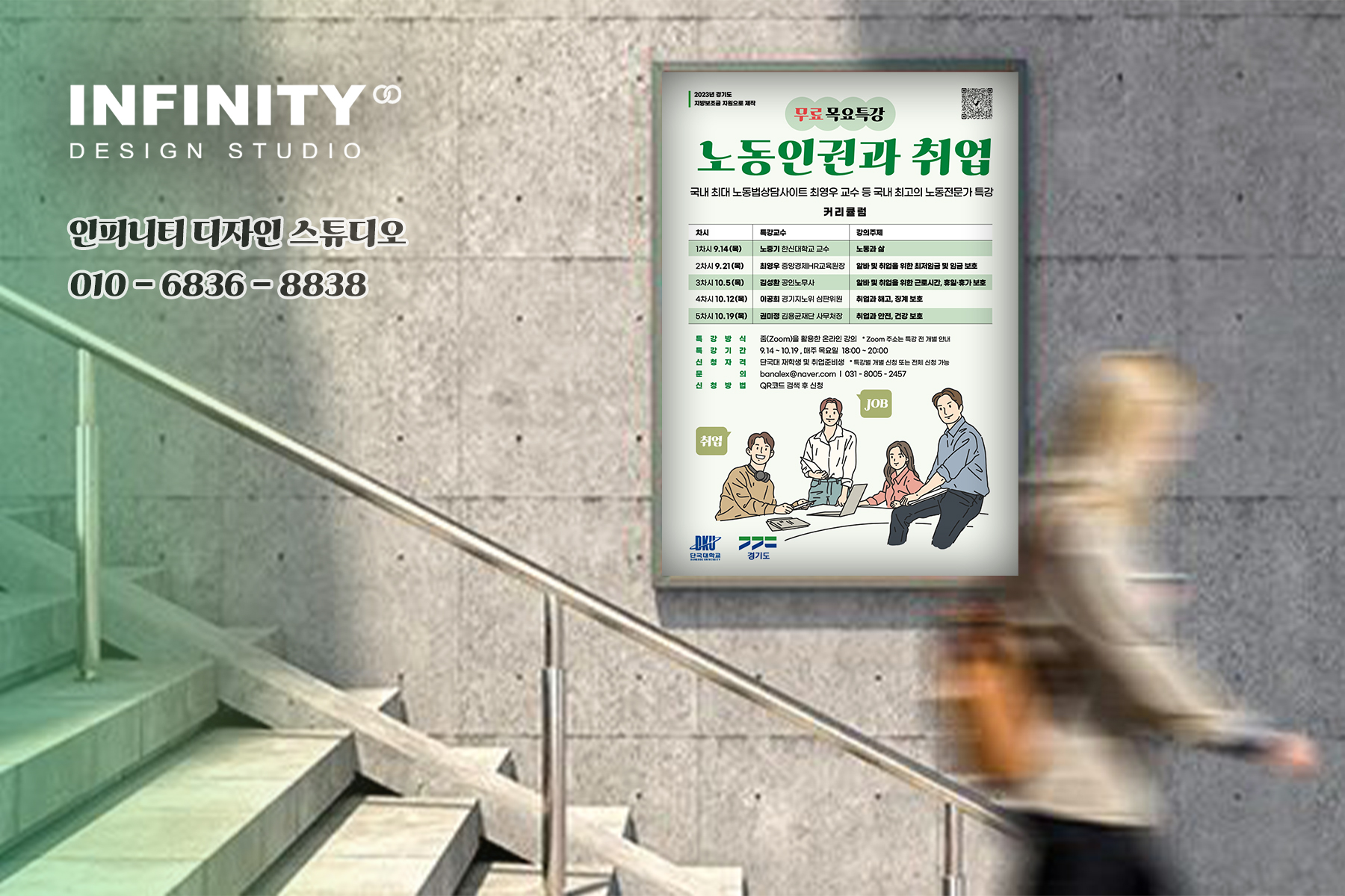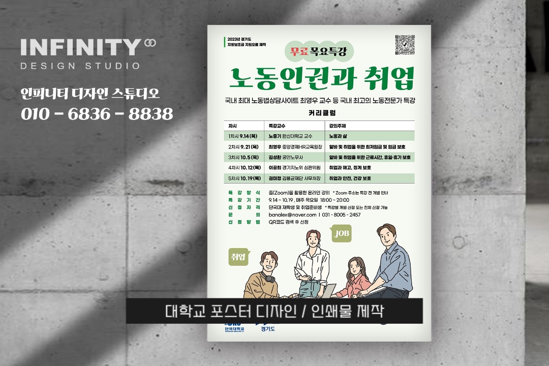 단국대 포스터 제작 / 대학 포스터 디자인 전문 :) 일러스트 포스터 맡겨주세요~! 안녕하세요, 포스터 디자인 전문 인피니티 디자인 스튜디오 입니다. 단국대학교에서 의뢰해주신 노동법률 상담