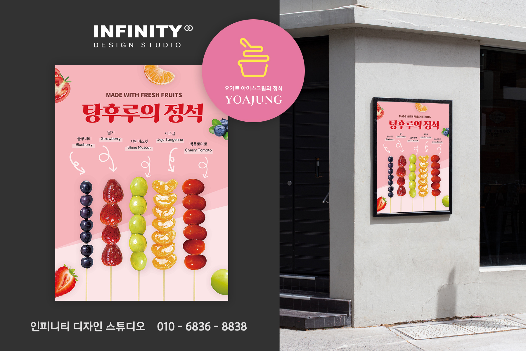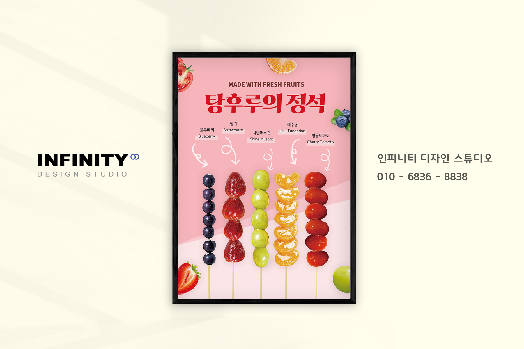 탕후루 포스터 제작 전문, 오픈 준비 필수!! 안녕하세요, 포스터 제작 전문 인피니티 디자인 스튜디오 입니다. 요즘 인기인 탕후루 가게오픈 준비로 의뢰해주신 포스터 2종 디자인, 인쇄물 포스
