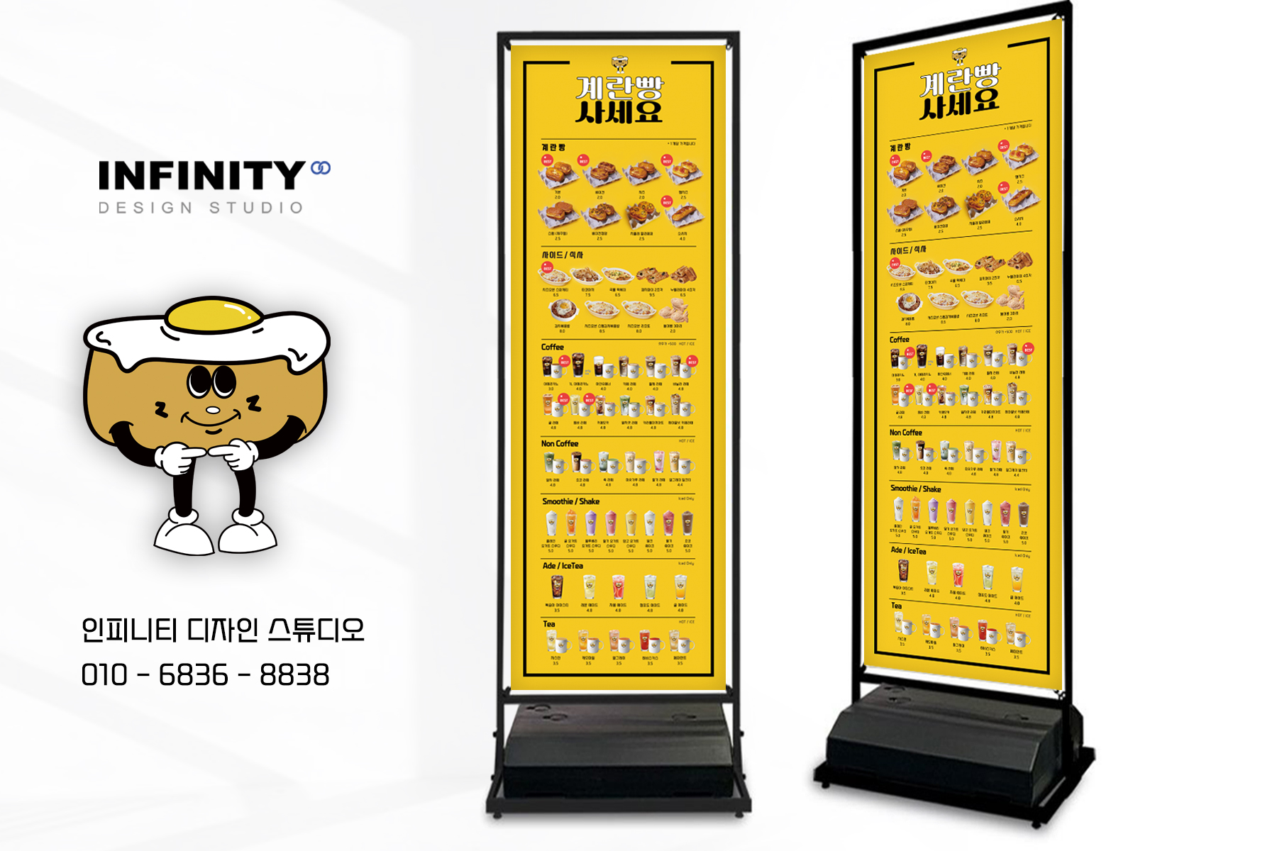 안녕하세요, 디자인, 제작 전문 인피니티 디자인 스튜디오 입니다. 가게에 필요한 메뉴판, 배너 등 없어서는 안될 필수템으로 꾸준히 인기인데요~ 스탠드 아크릴 메뉴판 소식 함께 보실까요?! 용