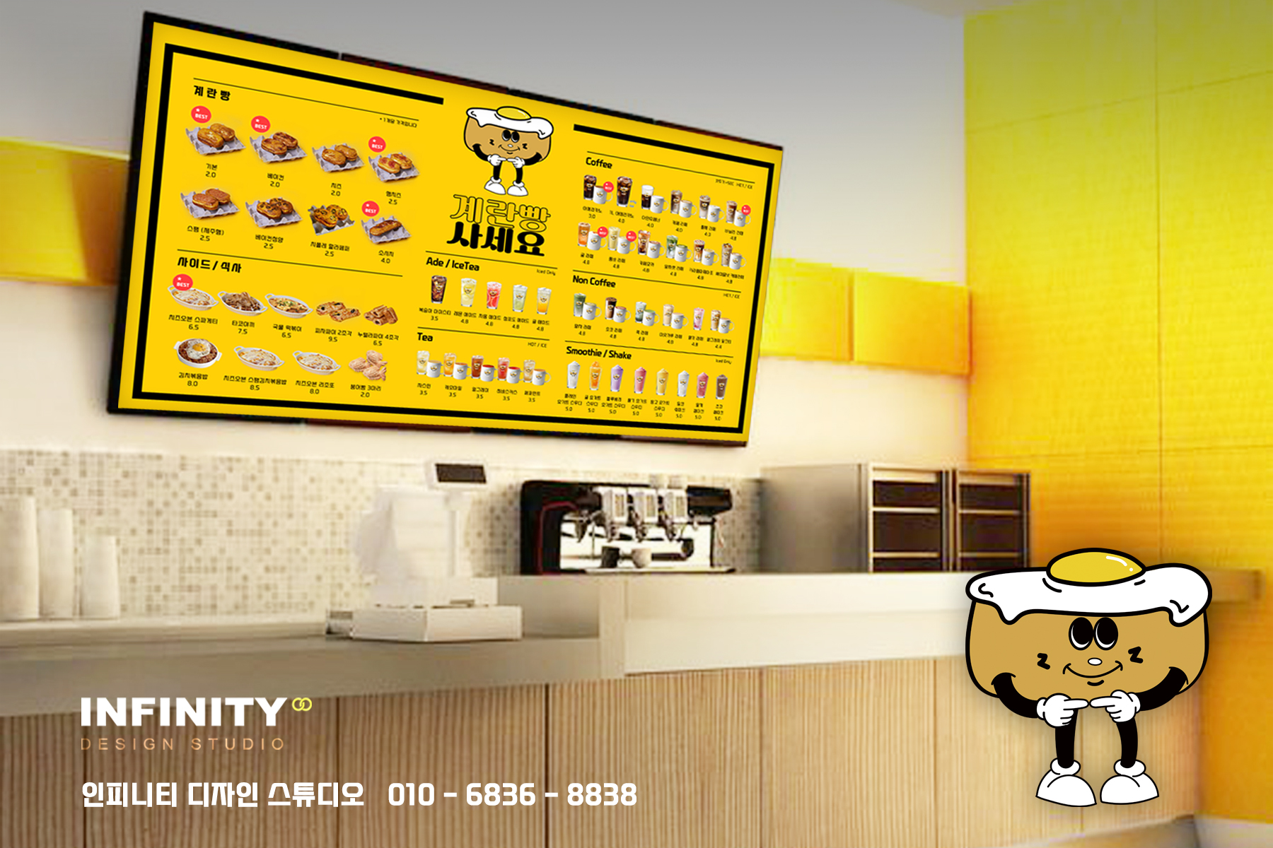 안녕하세요, 디자인, 제작, 홍보물 전문 인피니티 디자인 스튜디오 입니다. 오늘은 프랜차이즈 카페에서 의뢰해주신 배너, 광고물, 메뉴이미지 제작 소식 전해드립니다 :) 먼저, 영상 보실까요? ^