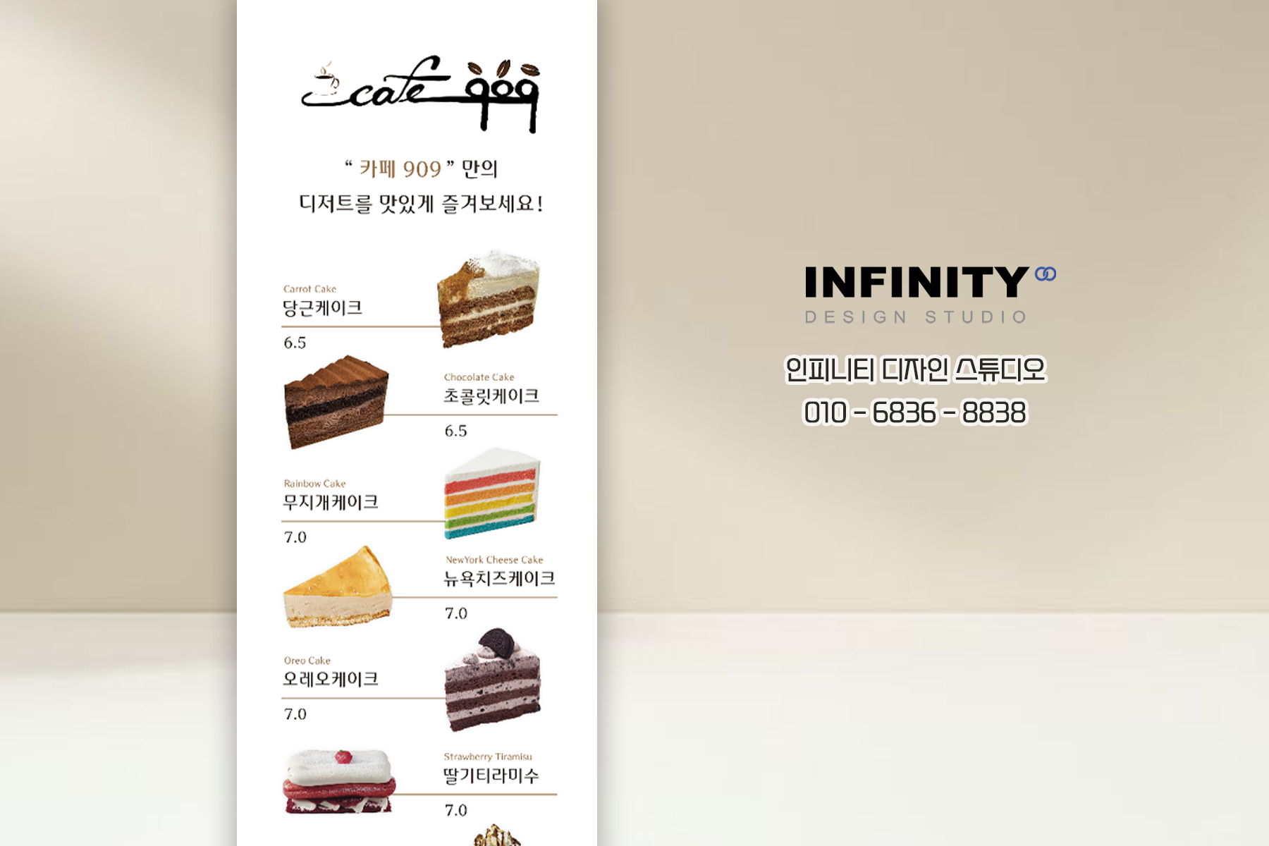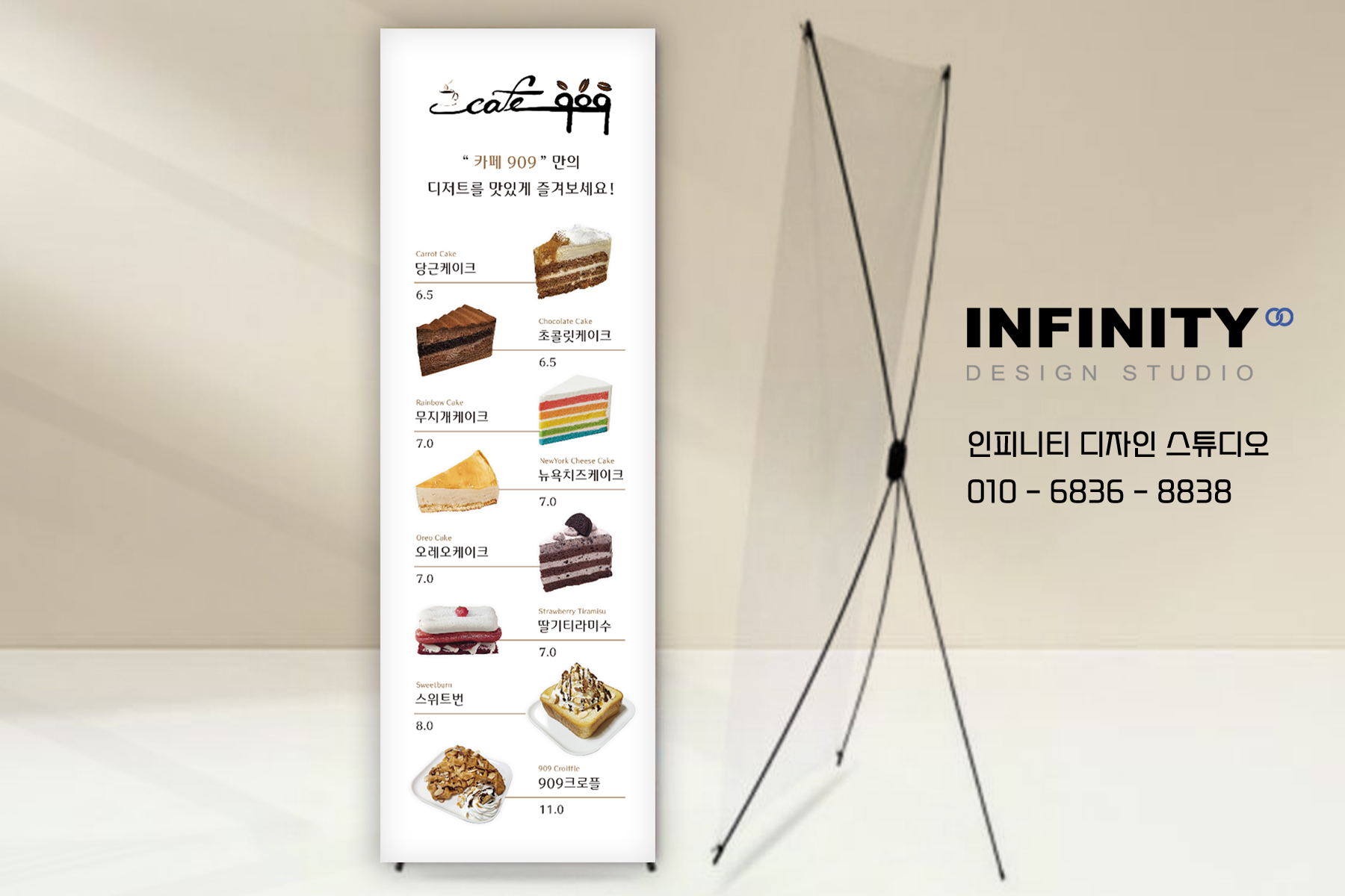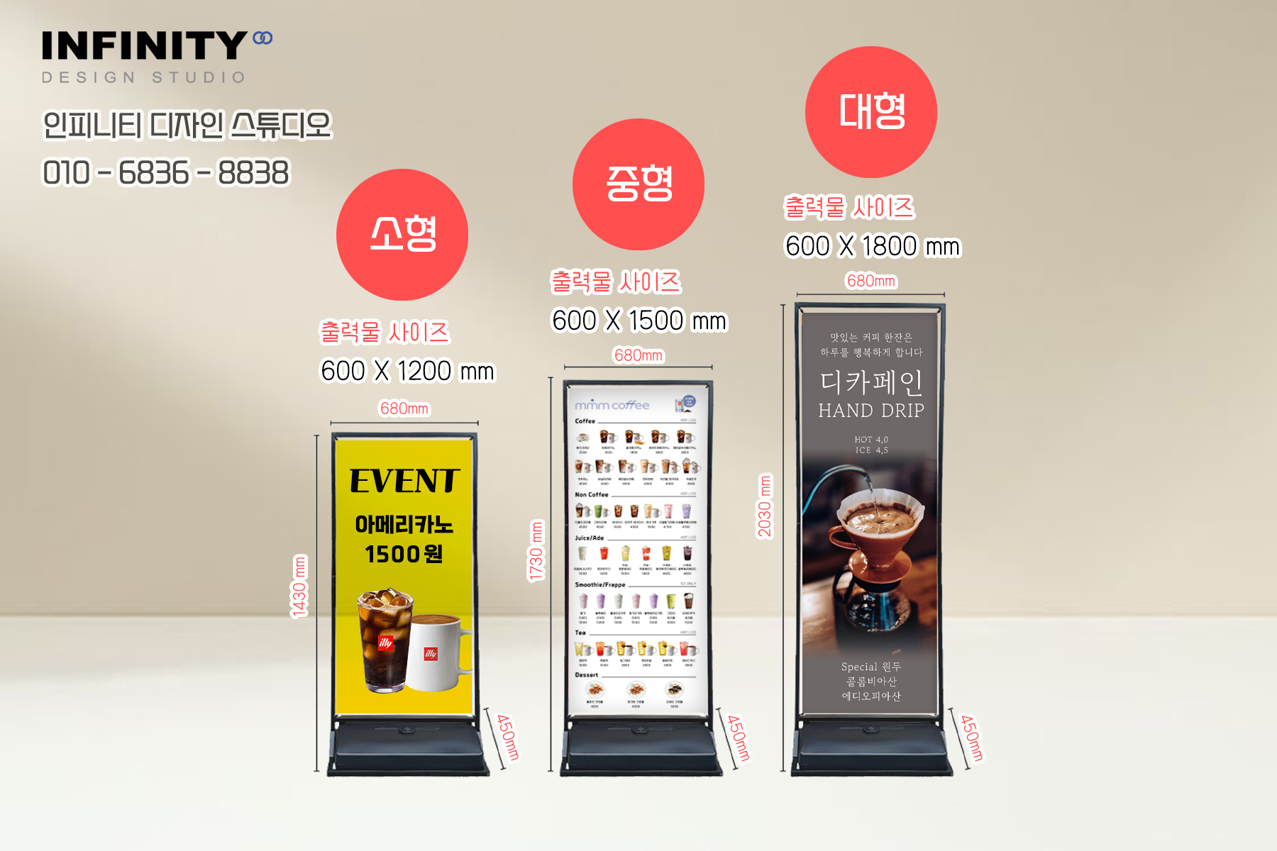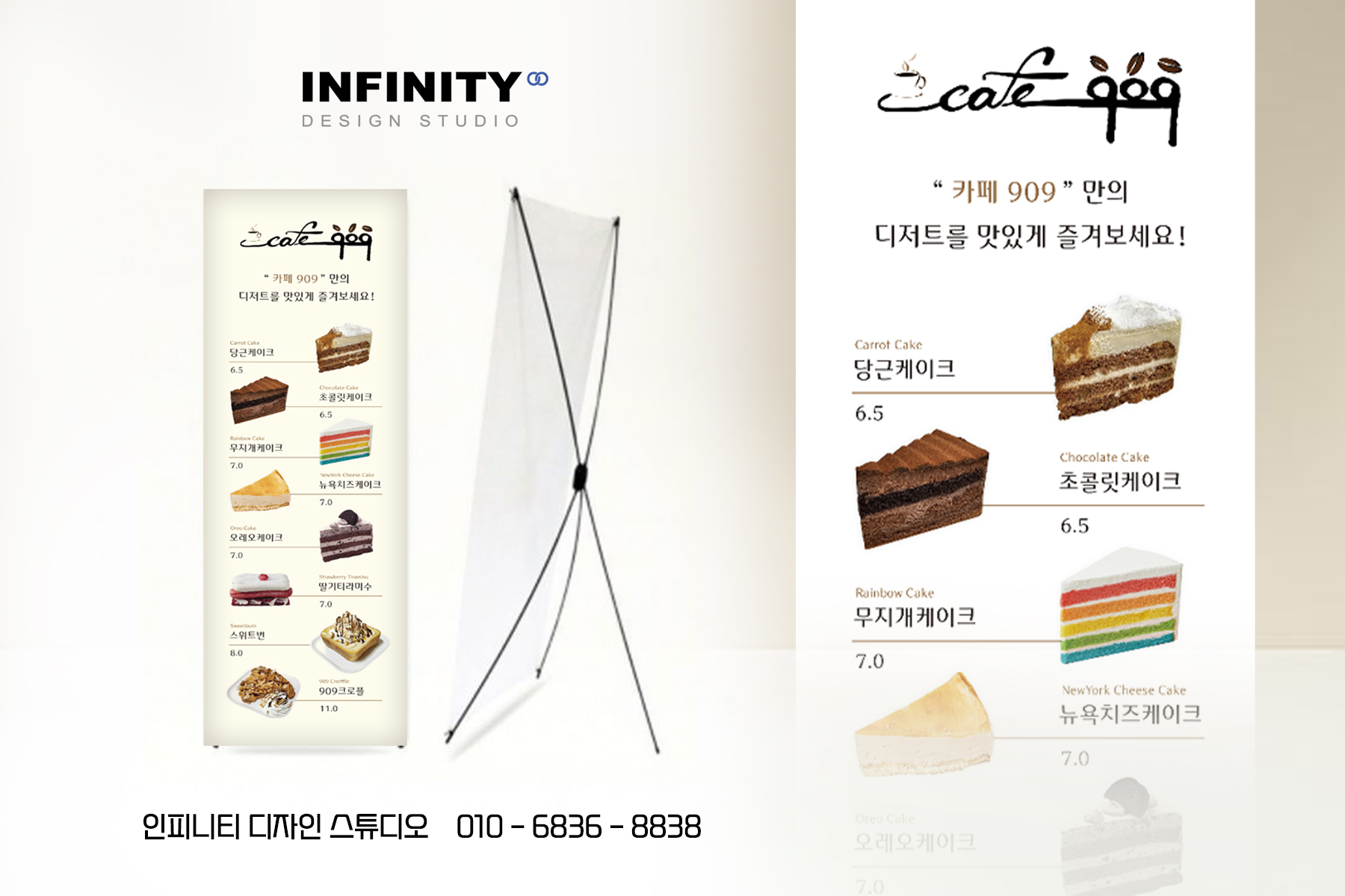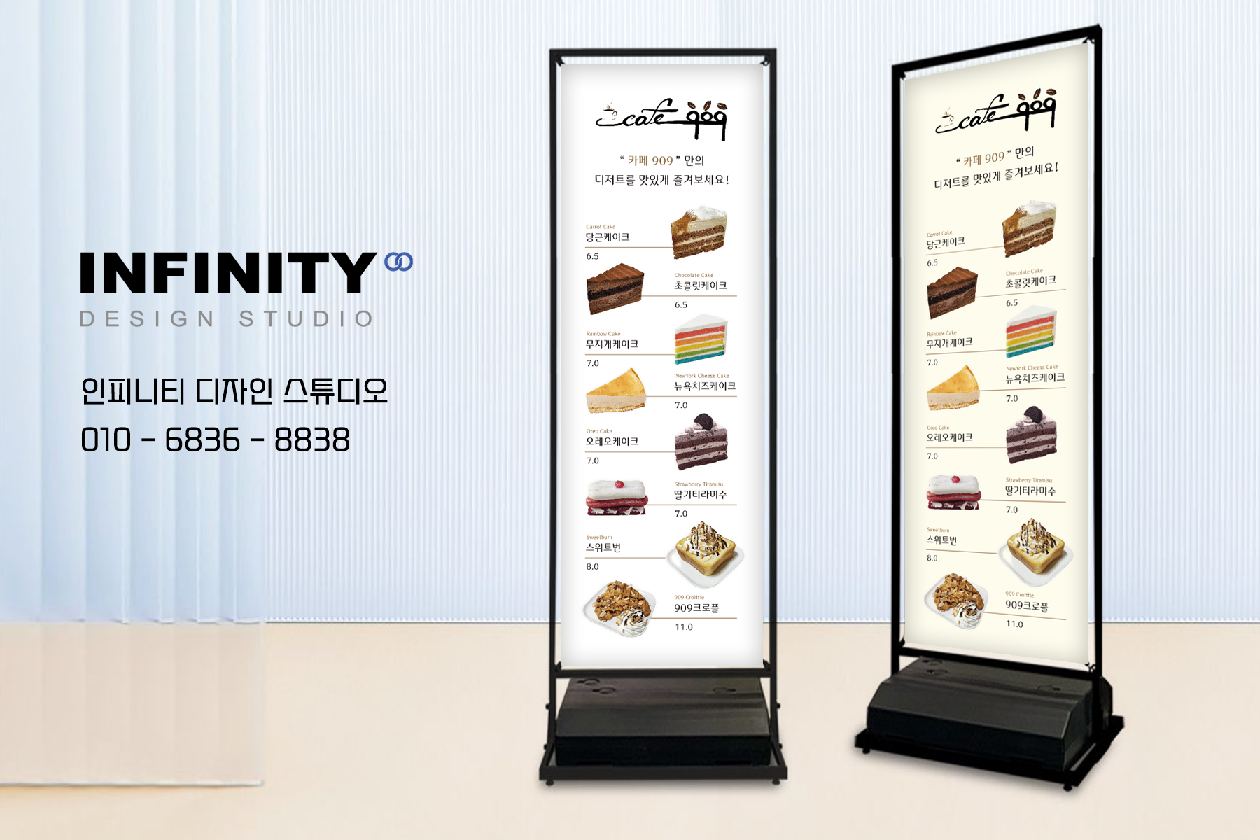 안녕하세요, 카페 홍보물 제작 전문 인피니티 디자인 스튜디오 입니다. 카페 홍보물로 다양한 제작물을 다루고 있는데요, 배너, 포스터, 메뉴판, 스티커, 로고 등 인기만점 아이템 중 오늘 포스