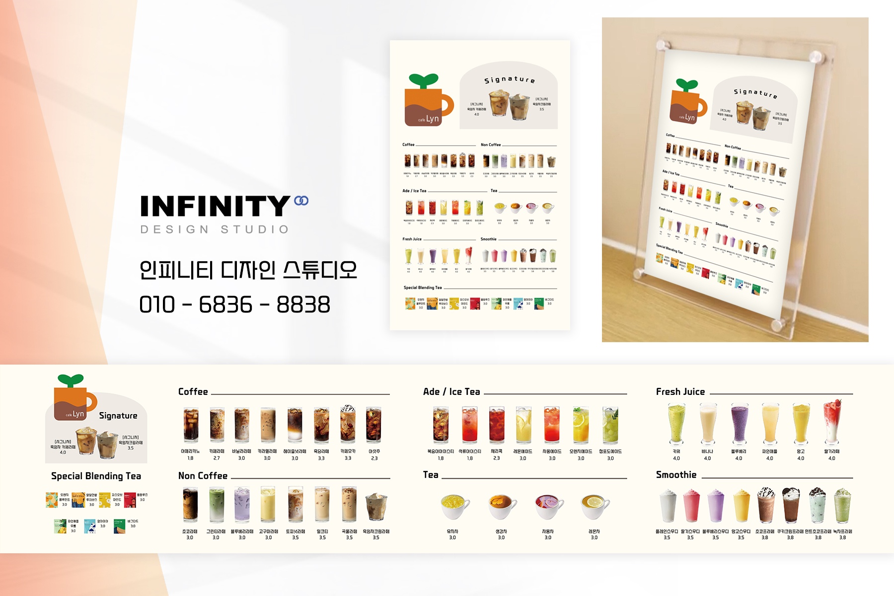 카페 아크릴 메뉴판 제작, 보기좋은 깔끔한 메뉴판 디자인