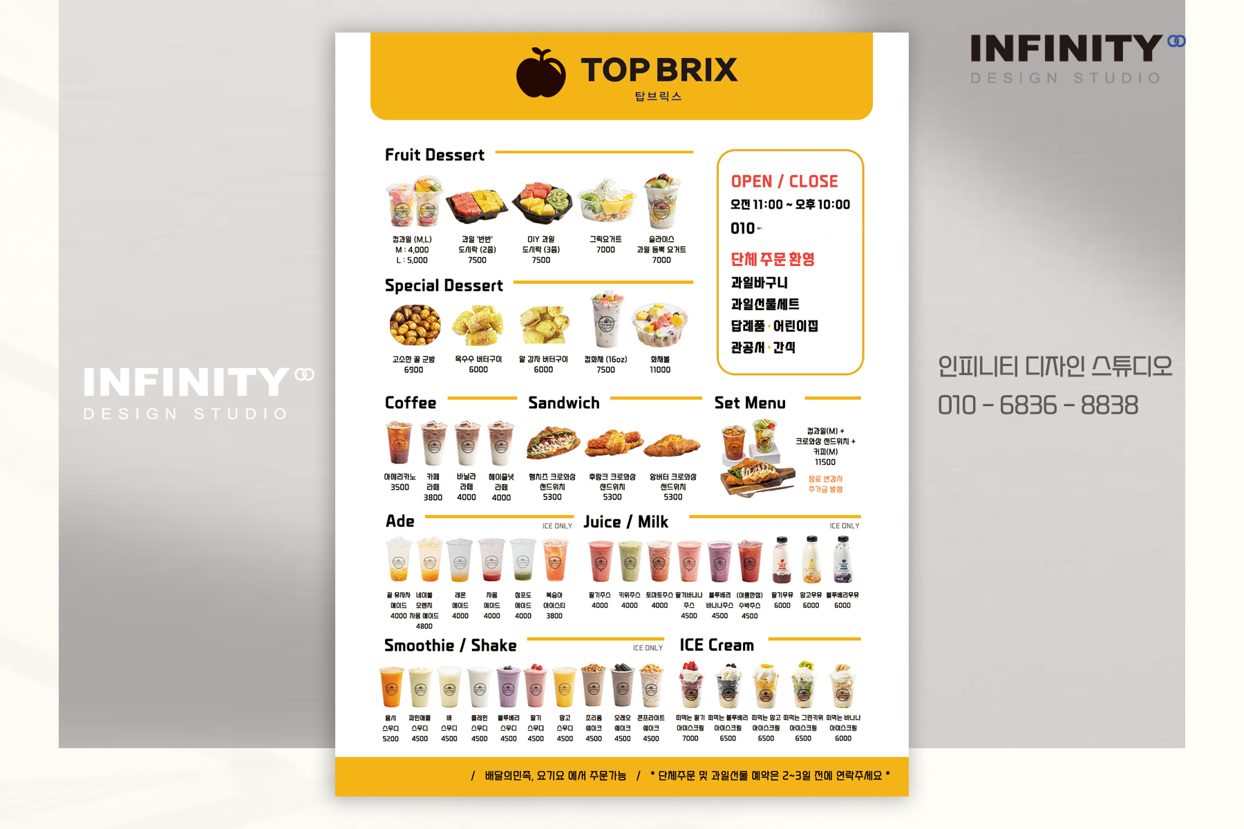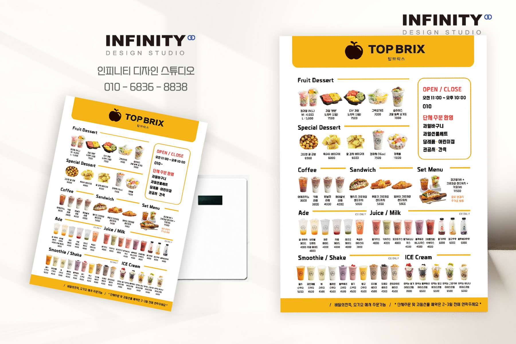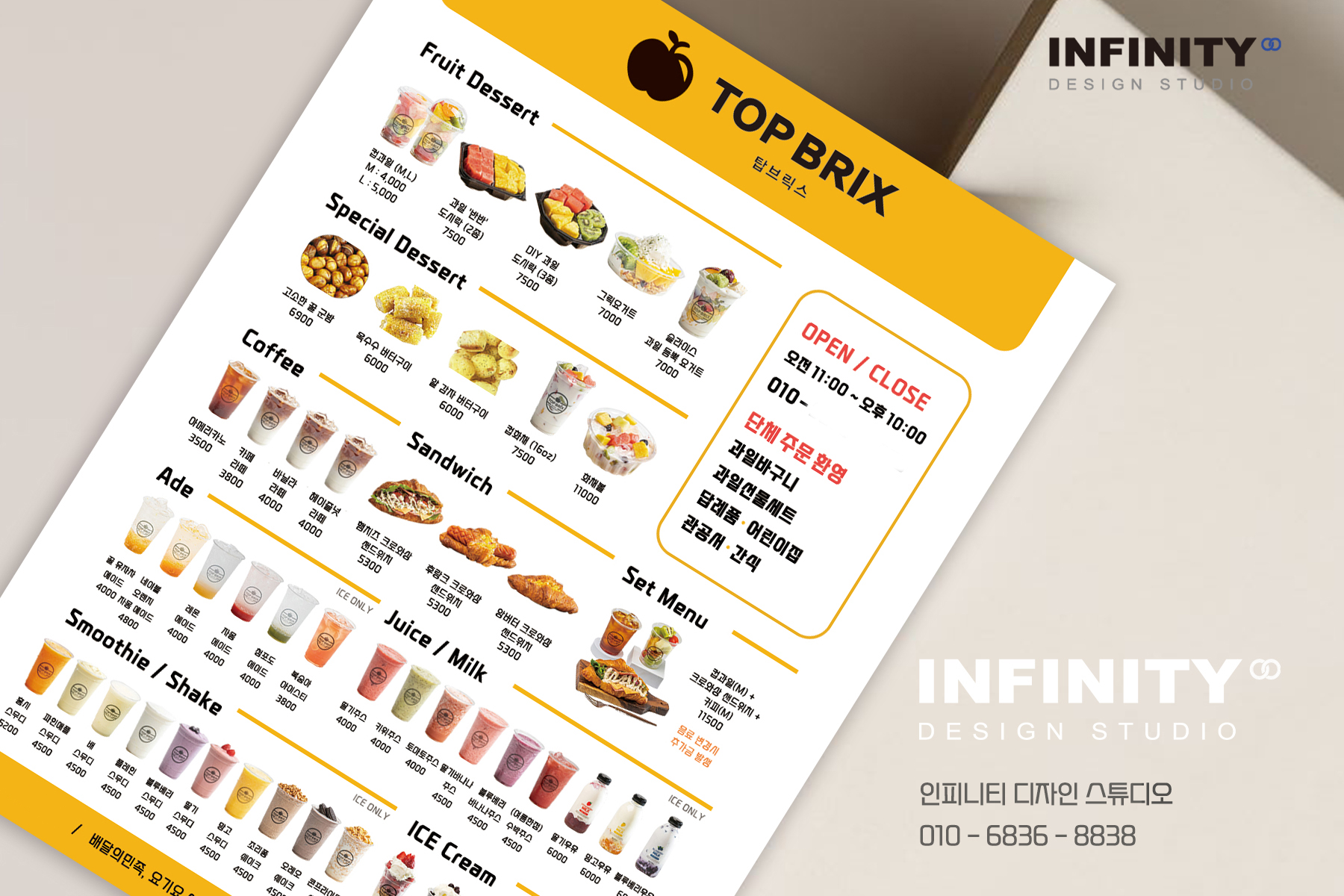 안녕하세요, 디자인, 제작 전문 인피니티 디자인 스튜디오 입니다. 프랜차이즈 카페 메뉴 촬영 대신 제작으로 완성! 배너, 메뉴판, 명함, 스티커 패키지 오늘은 서울 종로에 위치한 프랜차이즈