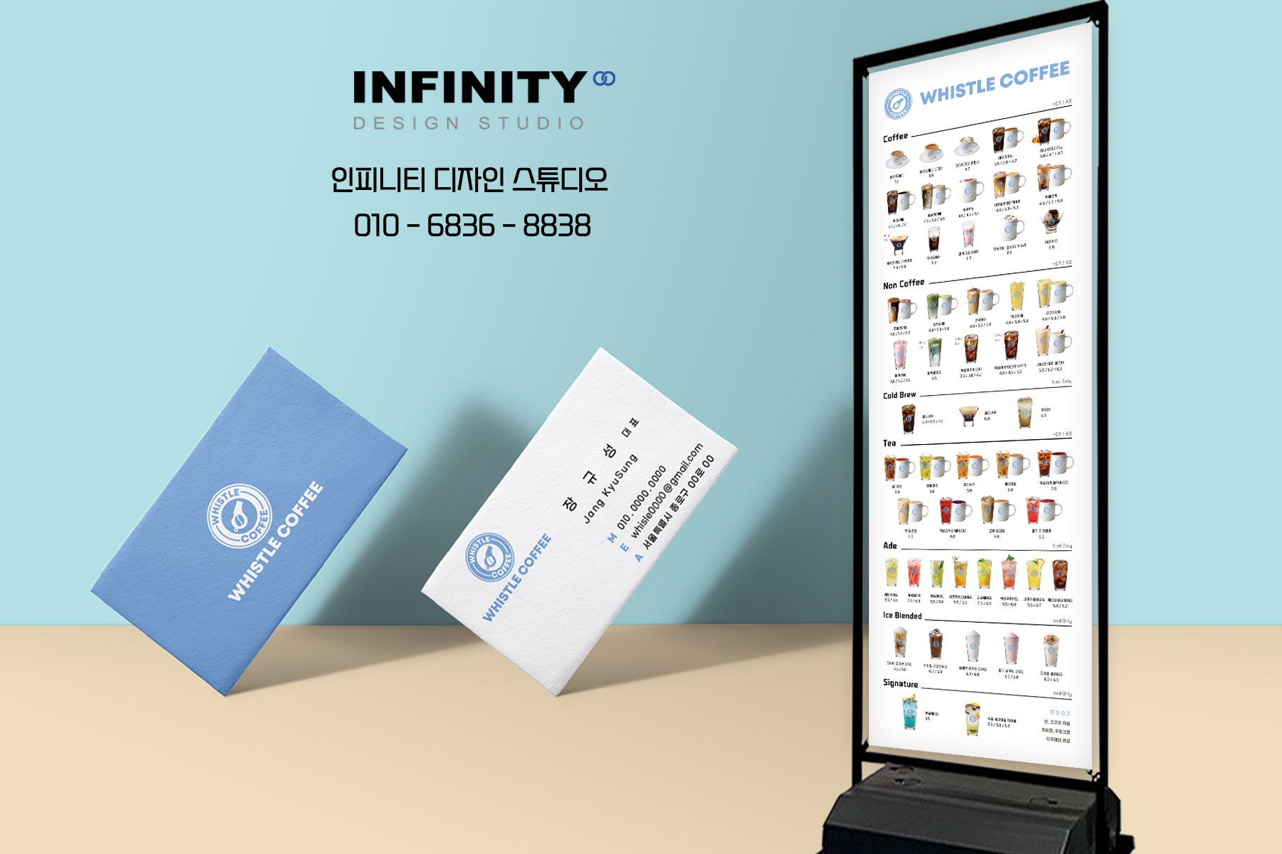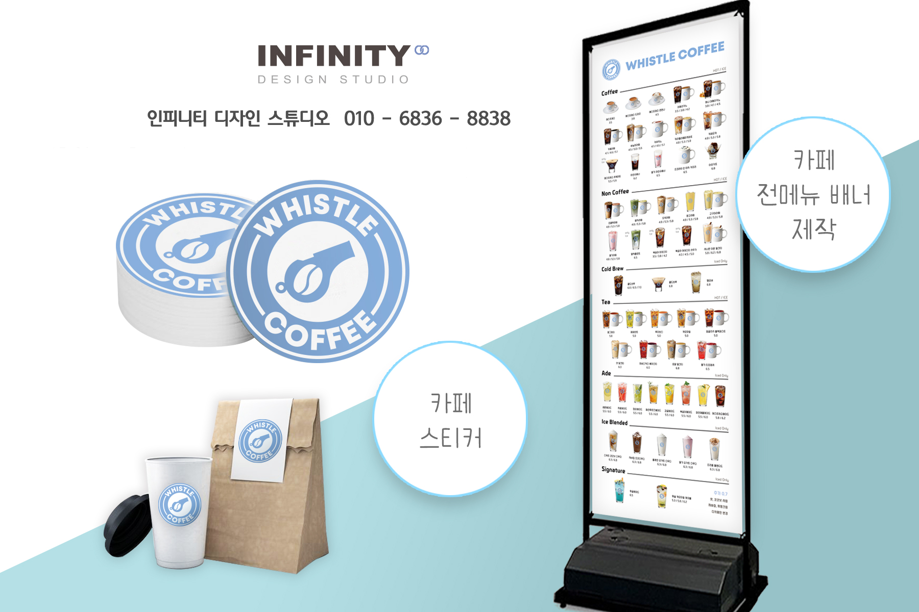안녕하세요, 디자인, 제작 전문 인피니티 디자인 스튜디오 입니다. 프랜차이즈 카페 메뉴 촬영 대신 제작으로 완성! 배너, 메뉴판, 명함, 스티커 패키지 오늘은 서울 종로에 위치한 프랜차이즈