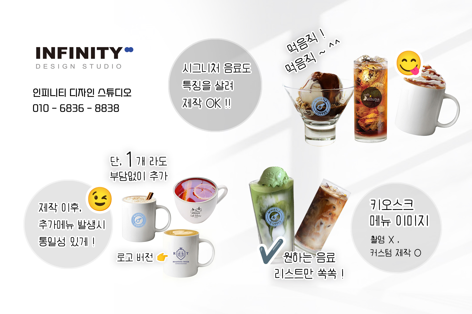 원하는 컵으로 메뉴리스트에 맞춤 제작 해드립니다.