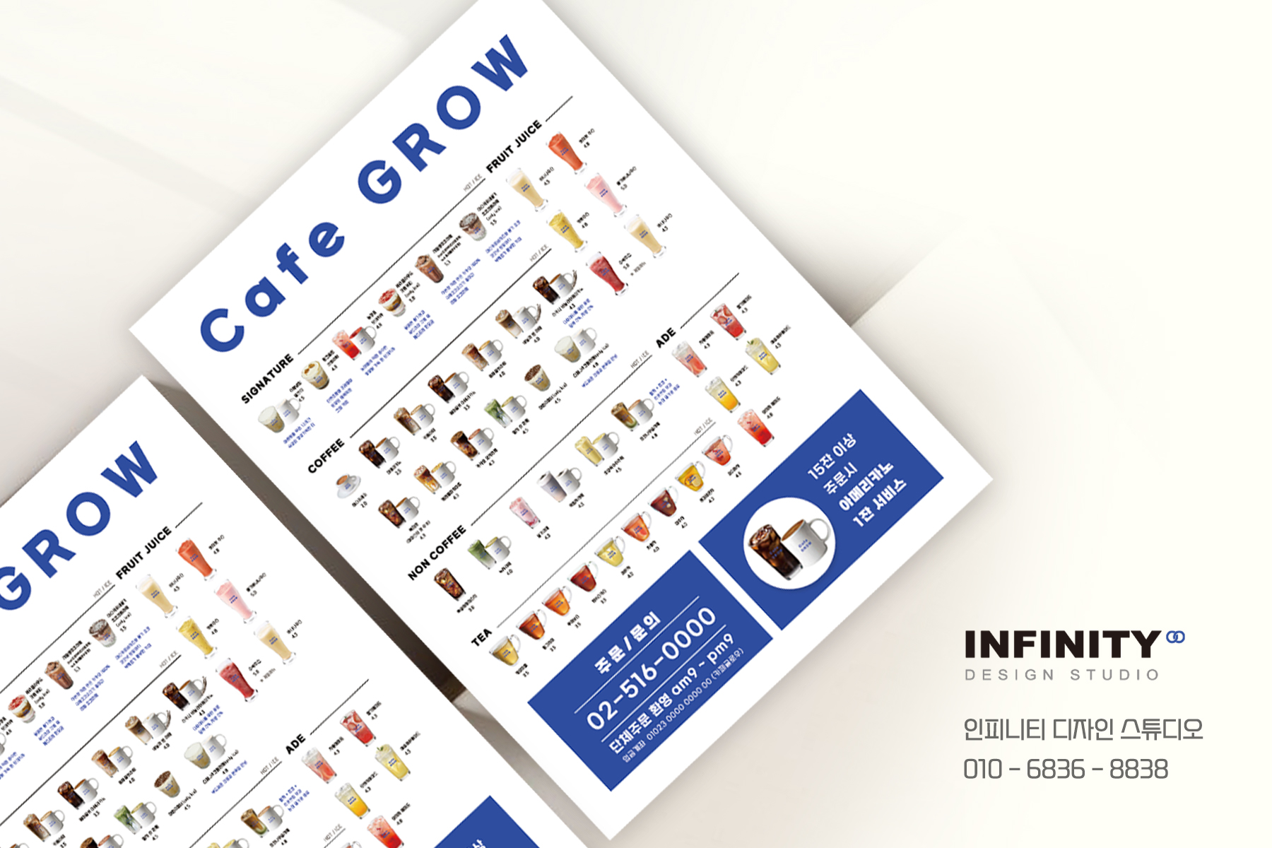 안녕하세요, 홍보물 제작, 디자인 전문 인피니티 디자인 스튜디오 입니다. 오늘은 카페 메뉴 포스터 제작 ...