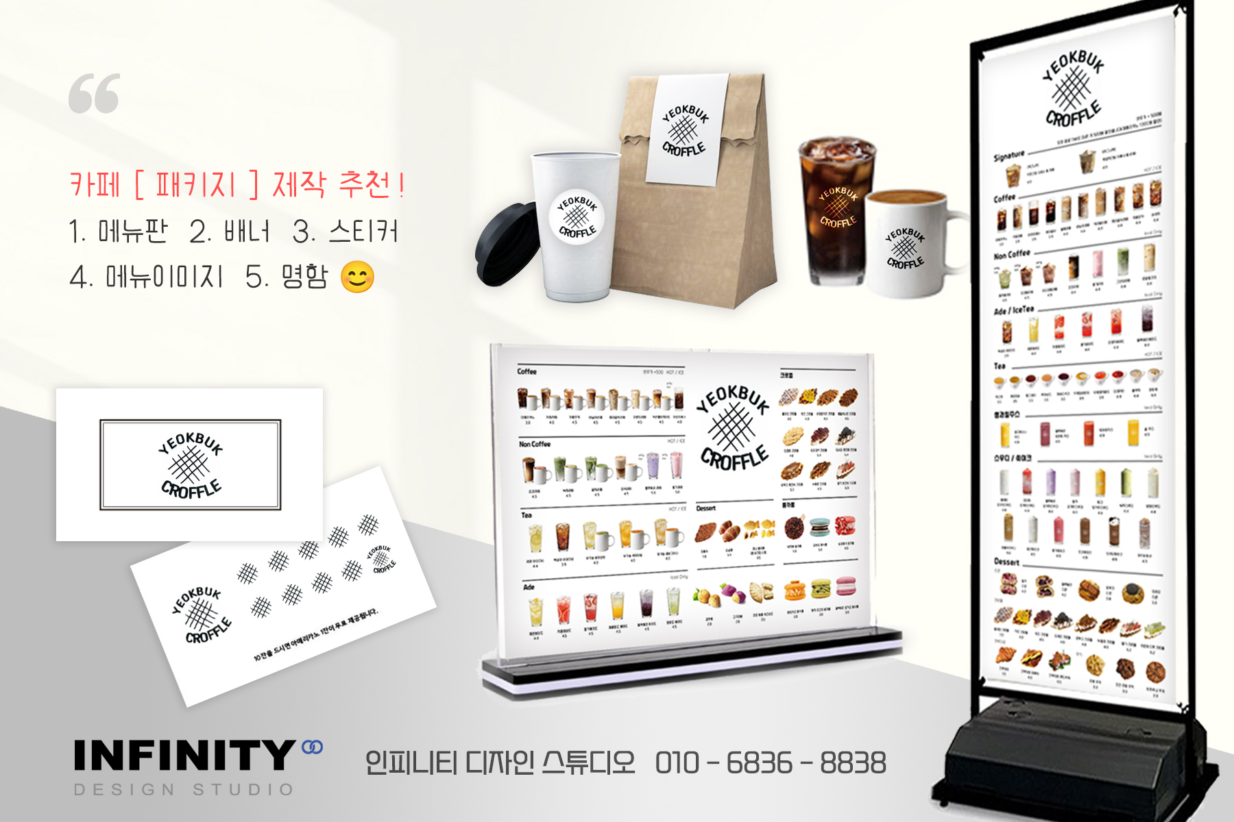 | 카페 오픈 준비, 창업 패키지, 메뉴판, 배너 제작, 메뉴 촬영 제작, 로고 디자인, 스티커 (0) | 2024.05.21 |