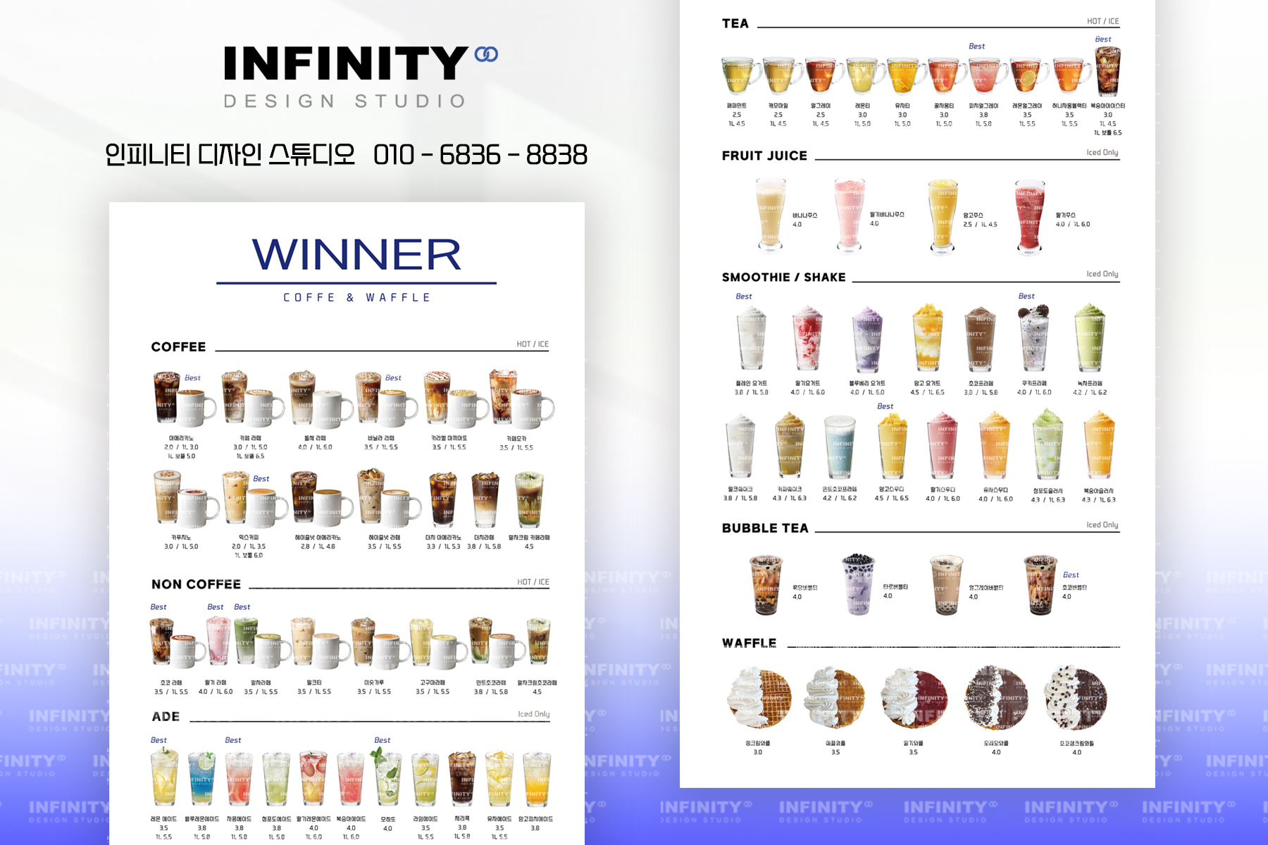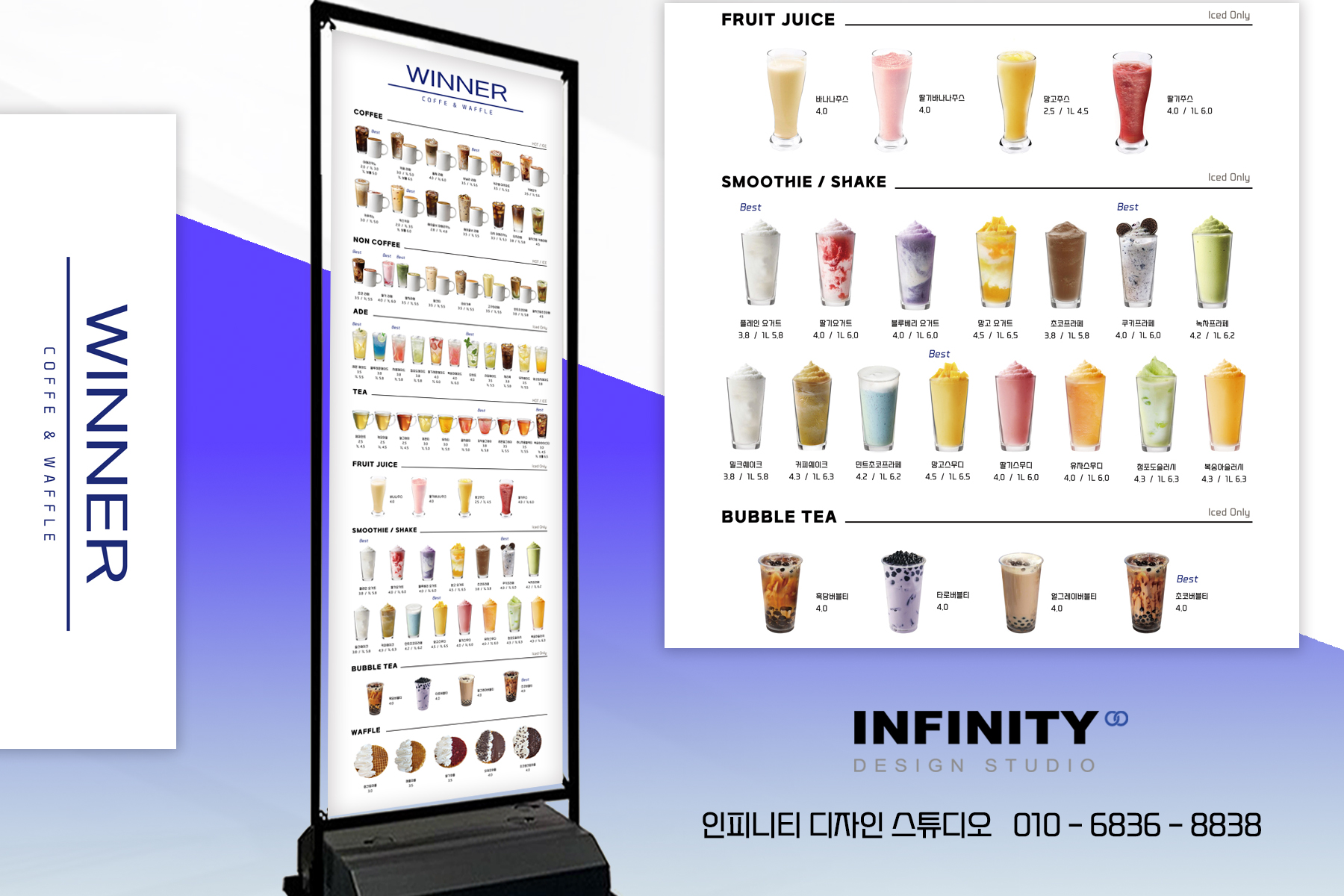안녕하세요, 홍보물 제작, 디자인 전문인피니티 디자인 스튜디오 입니다. 오늘은 카페에서 의뢰해주신 메뉴판 DID 디자인소식 준비했어요 :) 전자 메뉴판 디자인, LED 메뉴판,카페 DID 메뉴판 디