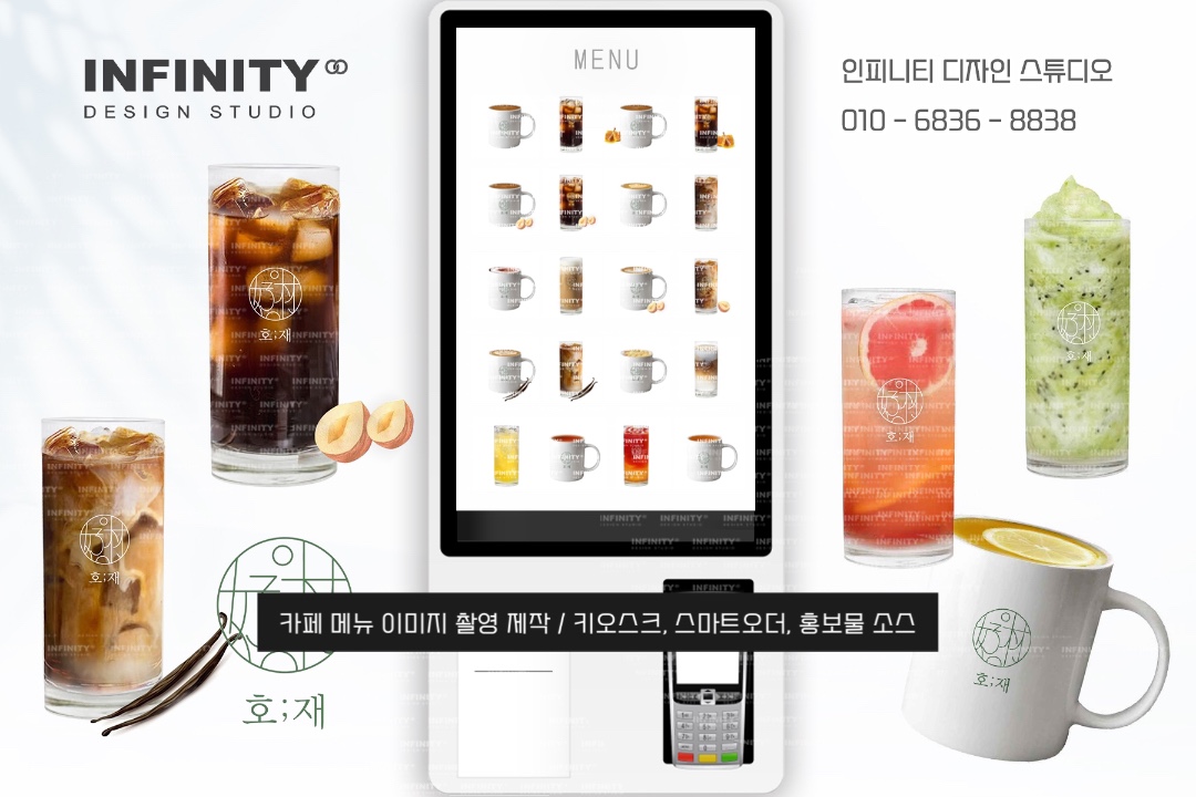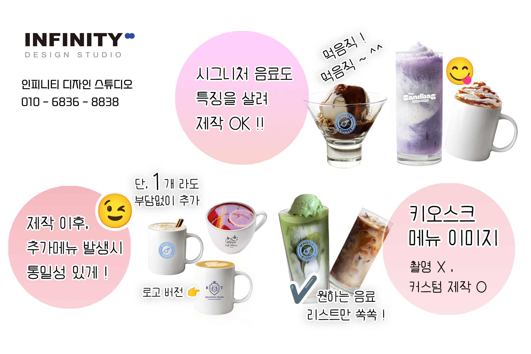 안녕하세요, 디자인, 제작 전문인피니티 디자인 스튜디오 입니다.카페에서 많이 필요한 키오스크 등록 사진 추천포스팅 준비했습니다. 핫, 아이스 별도의 컵으로카페 컨셉을 담은 컬러도 적용