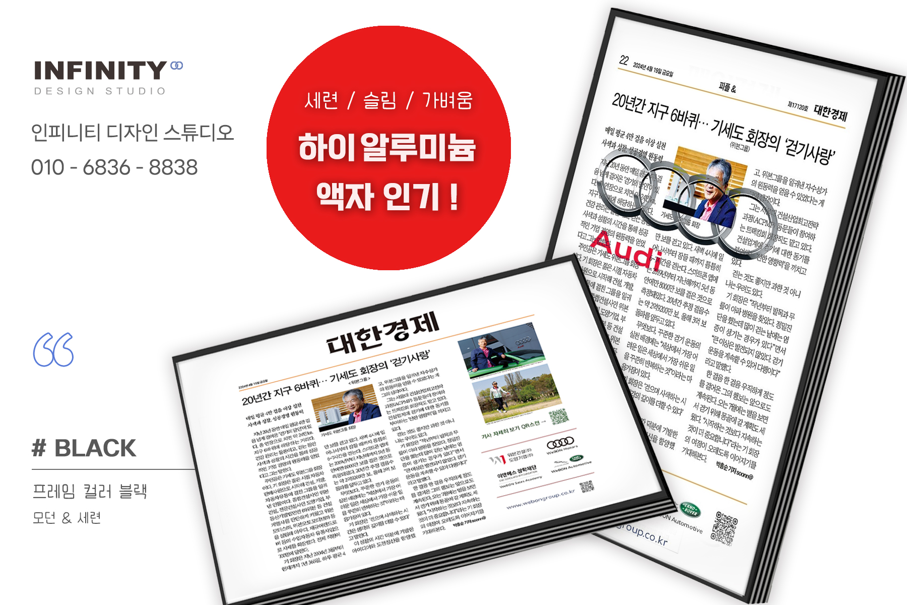 | 신문기사 맞춤 액자 제작, 아우디 전시장 액자, 홍보 액자 제작 (1) | 2024.06.25 |