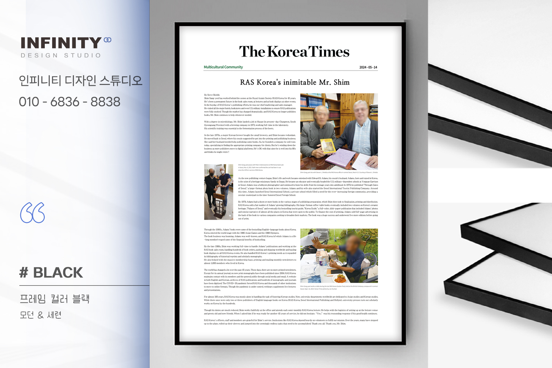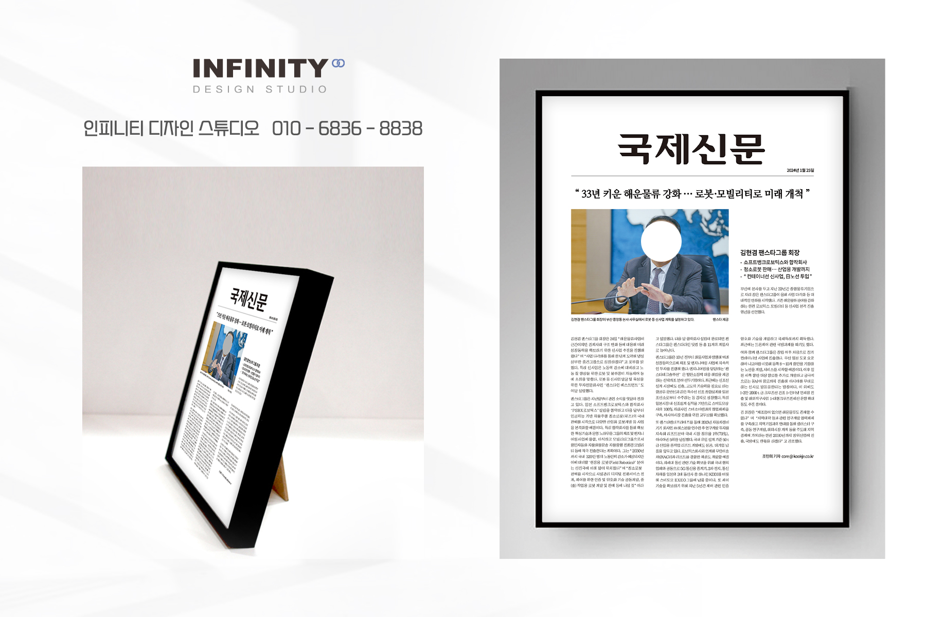 안녕하세요, 디자인, 제작 전문인피니티 디자인 스튜디오 입니다.오늘은 회사 액자 제작 소식포스팅 드립니다 :) 신문기사에 난 소식을 담아원하는 사이즈에 맞춤 제작 의뢰를 주셔서진행 완