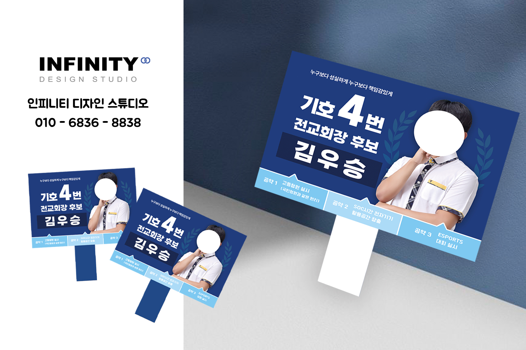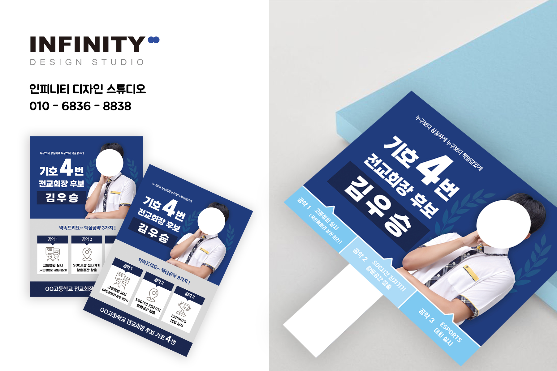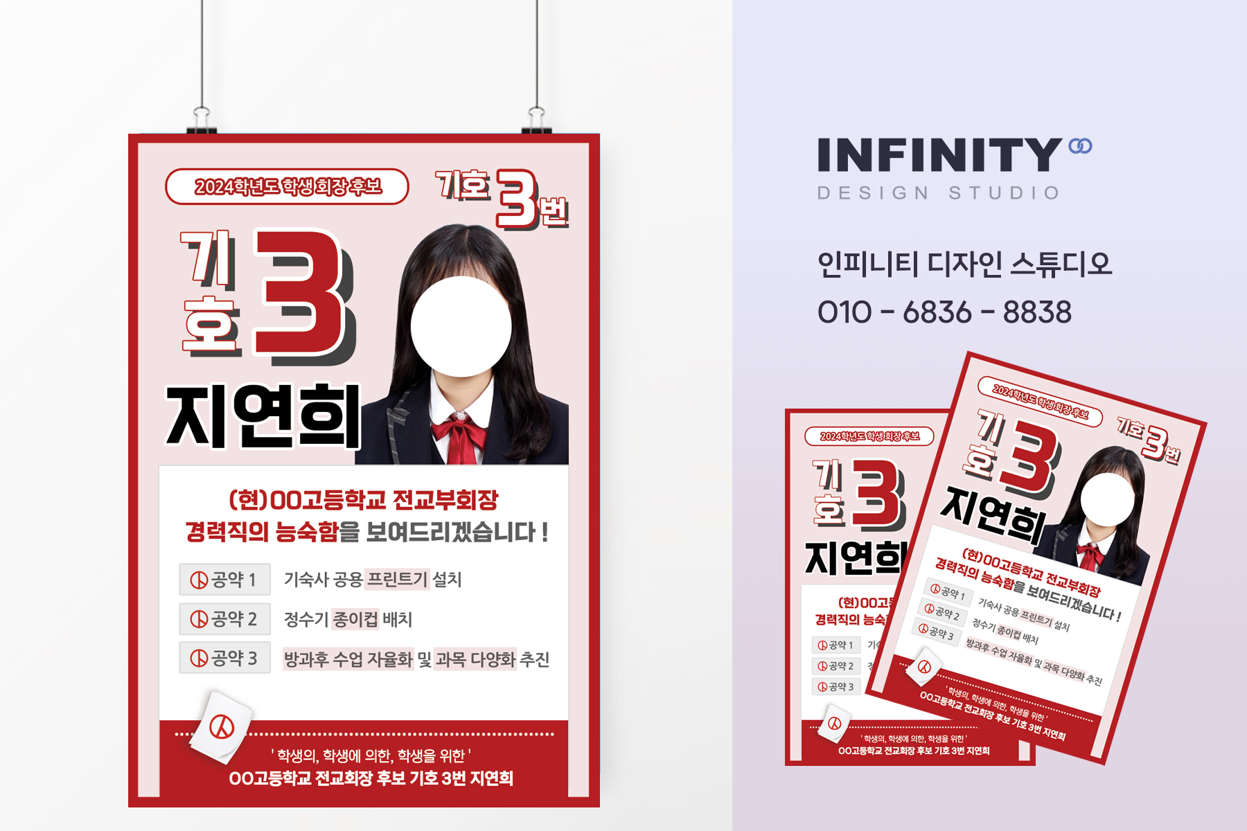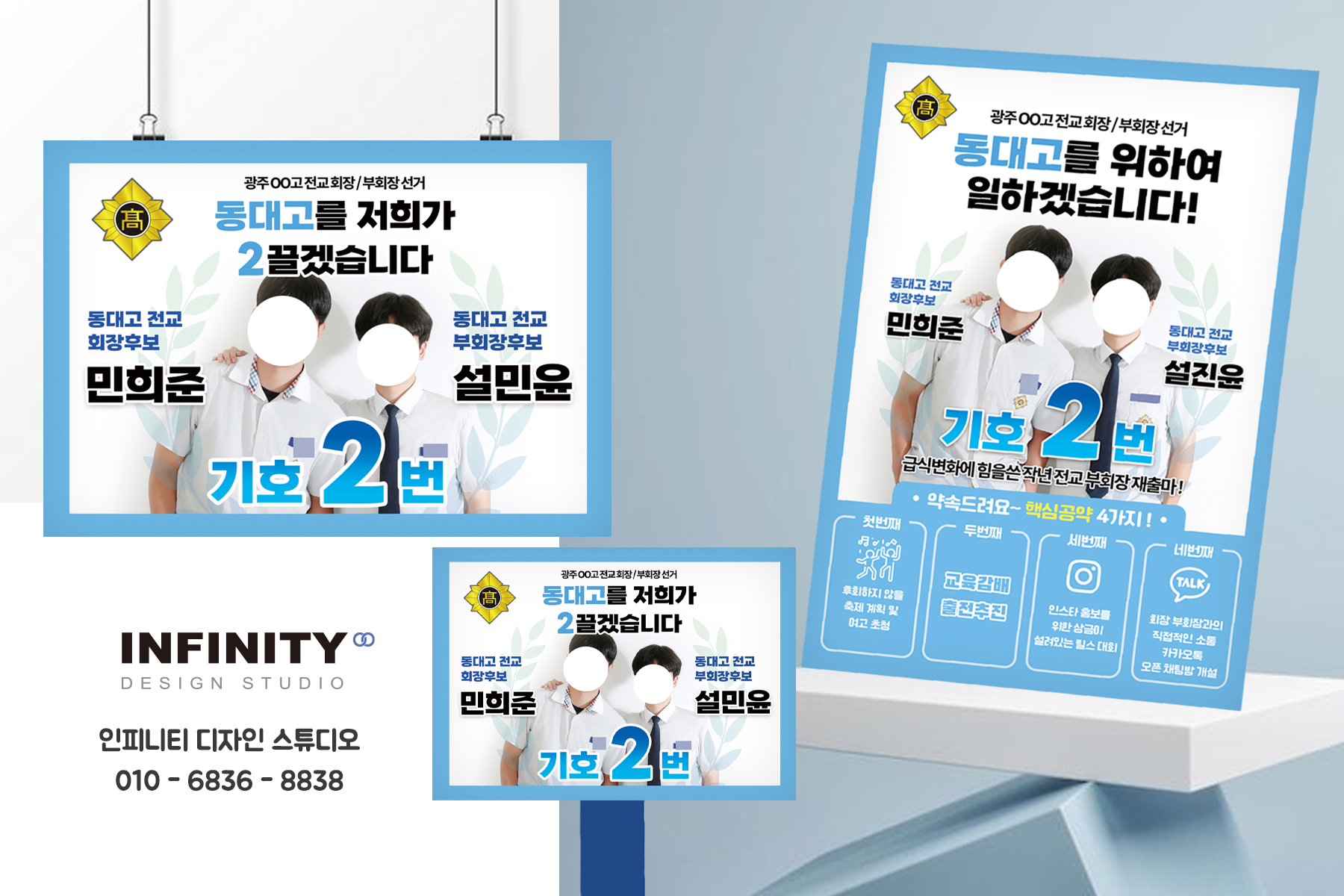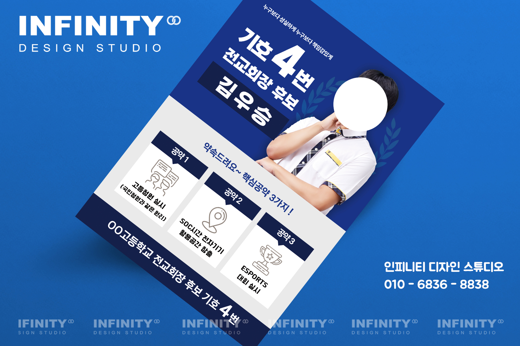 안녕하세요, 홍보물 디자인, 제작 전문인피니티 디자인 스튜디오 입니다. 고등학교 팀 선거포스터 제작,전교회장, 부회장 선거포스터 디자인, 인쇄포스팅 드립니다 :) 선거활동 준비로 바쁜 선