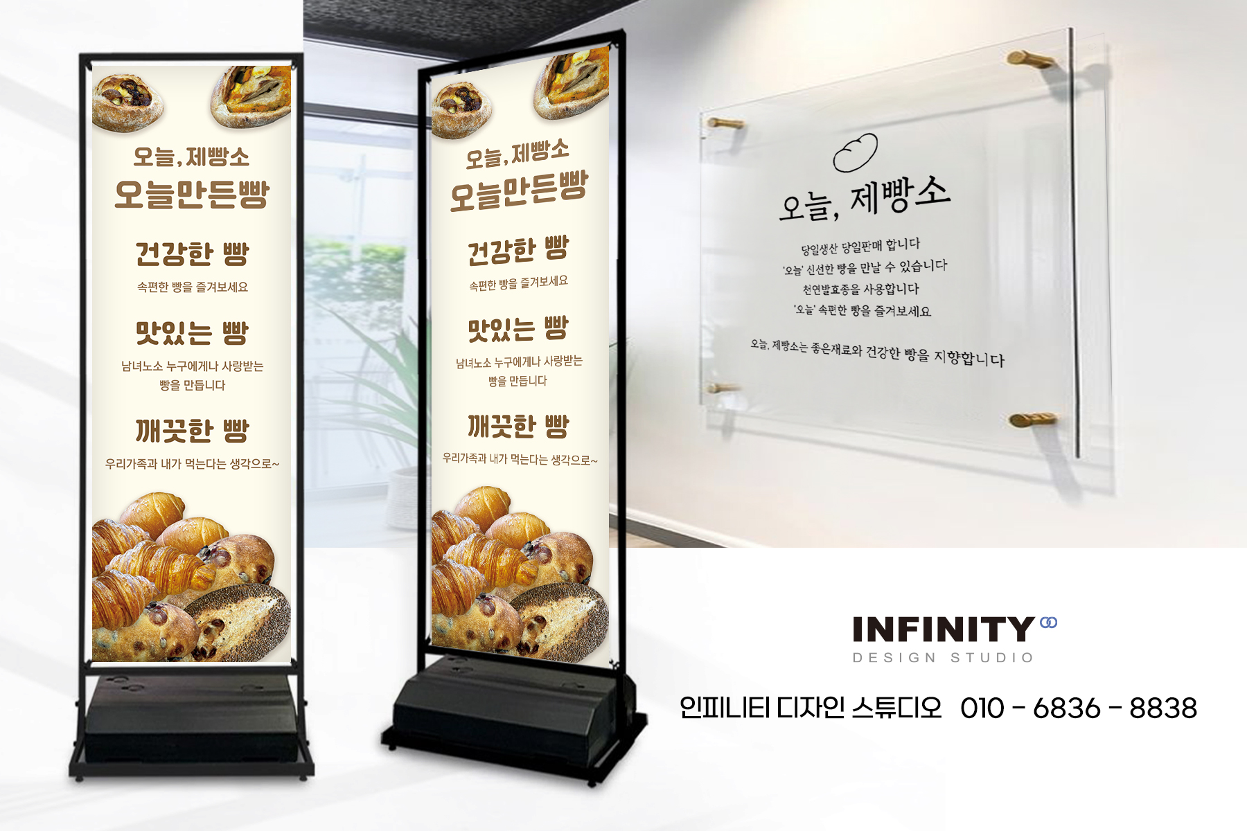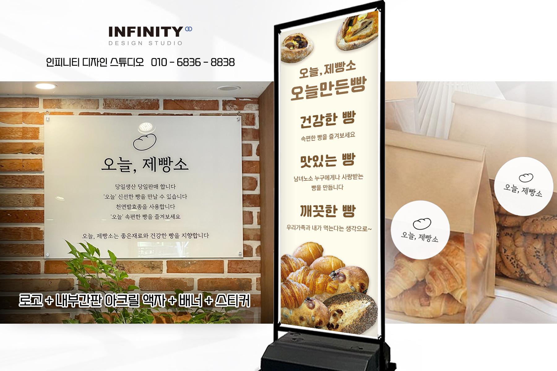 안녕하세요, 디자인, 제작 전문인피니티 디자인 스튜디오 입니다. 오늘은 베이커리 / 제빵소 오픈 준비로아크릴다보액자, 스티커 제작을 의뢰해주셔서진행 완료해드린 소식 포스팅 드려요 :)