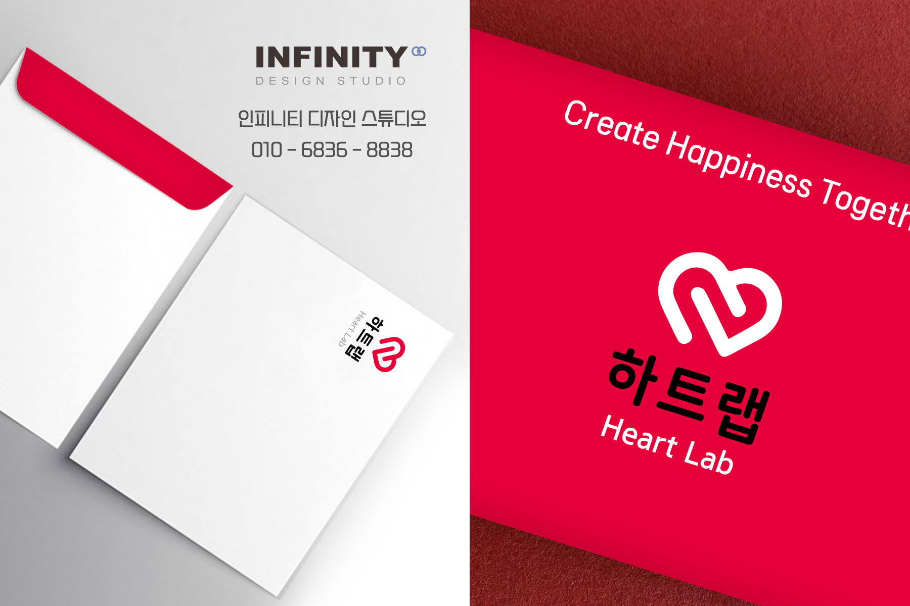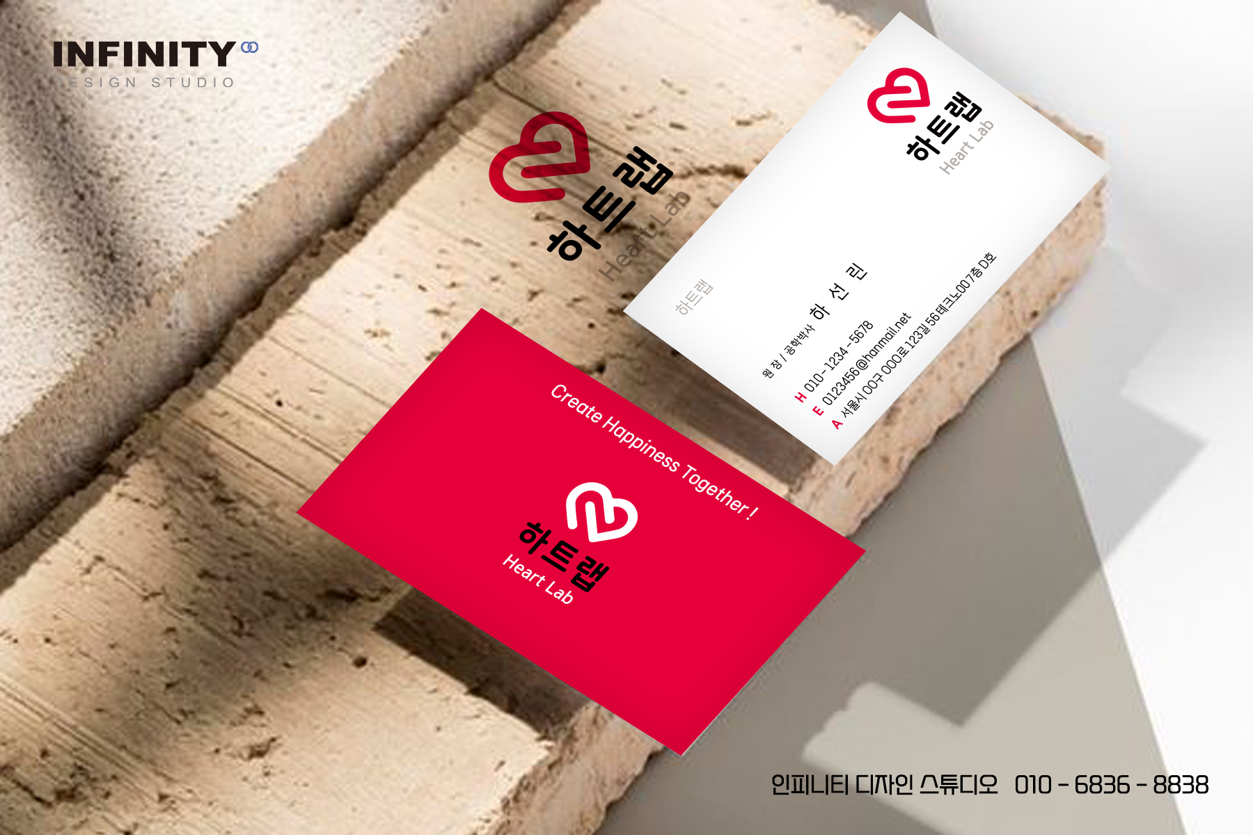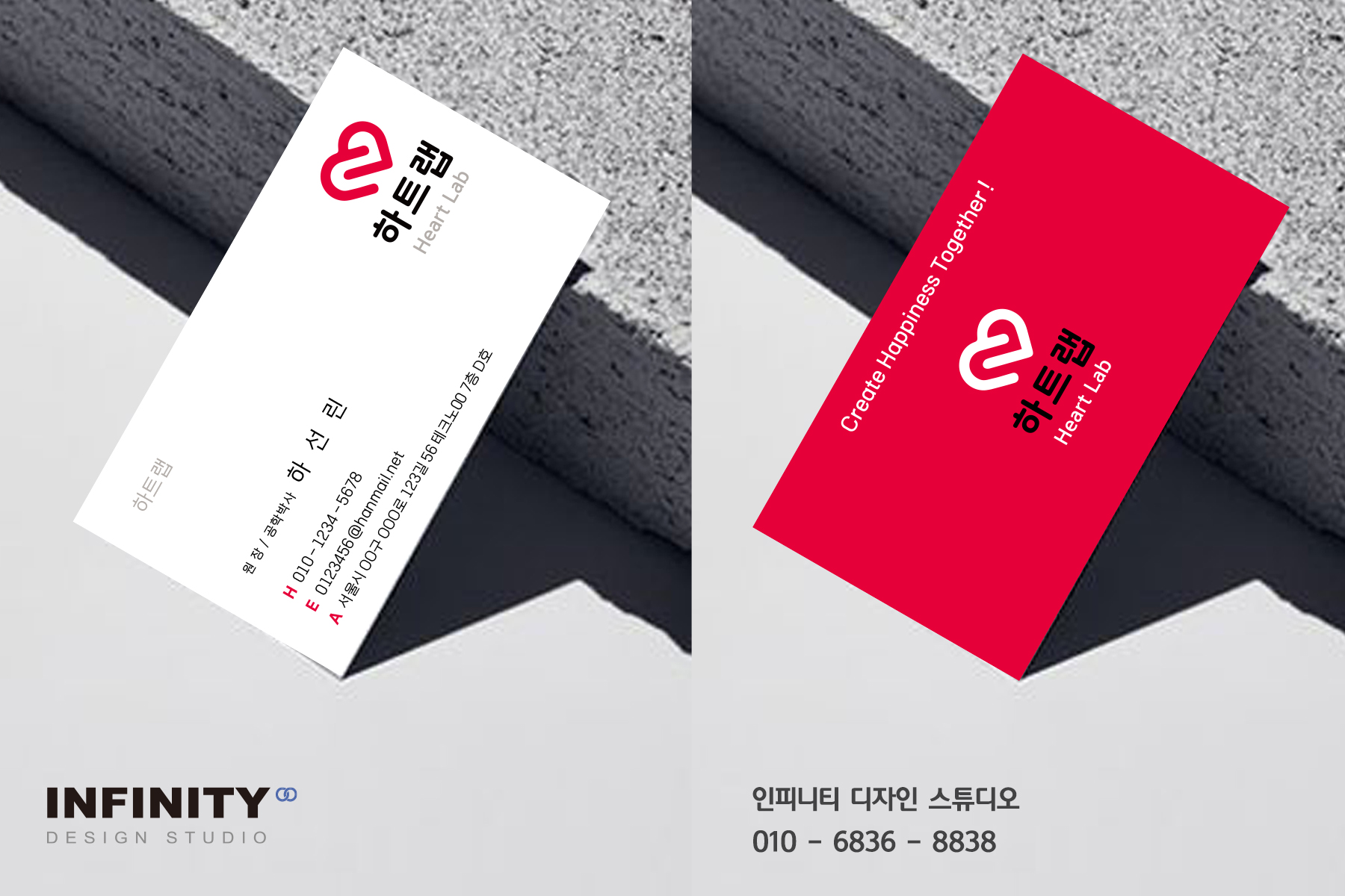 명함의 경우, 로고 컨셉과 통일성 있게 레드 컬러로