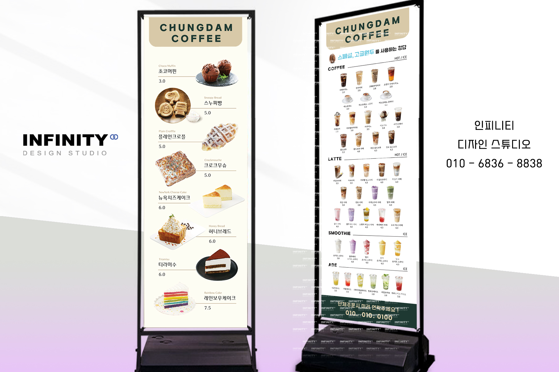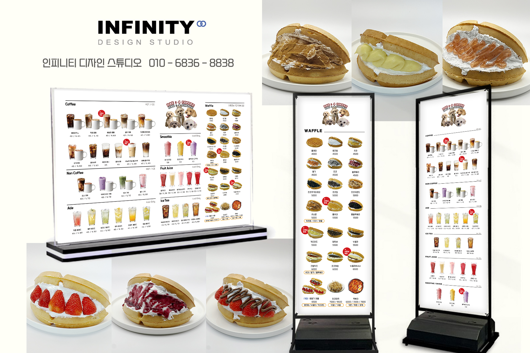 안녕하세요, 디자인, 제작 전문인피니티 디자인 스튜디오 입니다. 오늘은 카페 메뉴판, 아크릴 메뉴판 거치대 세트,배너 제작 추천 포스팅 드려요 :) 카페 메뉴판은 카페 필수템인데요 :) 한