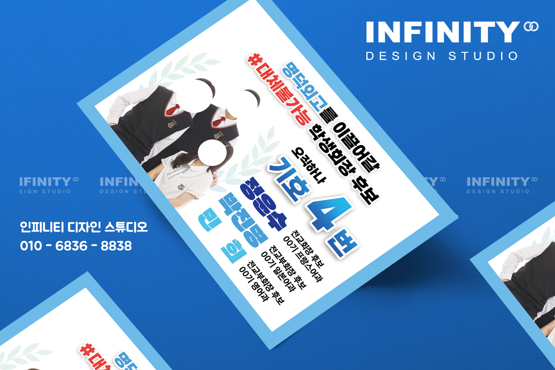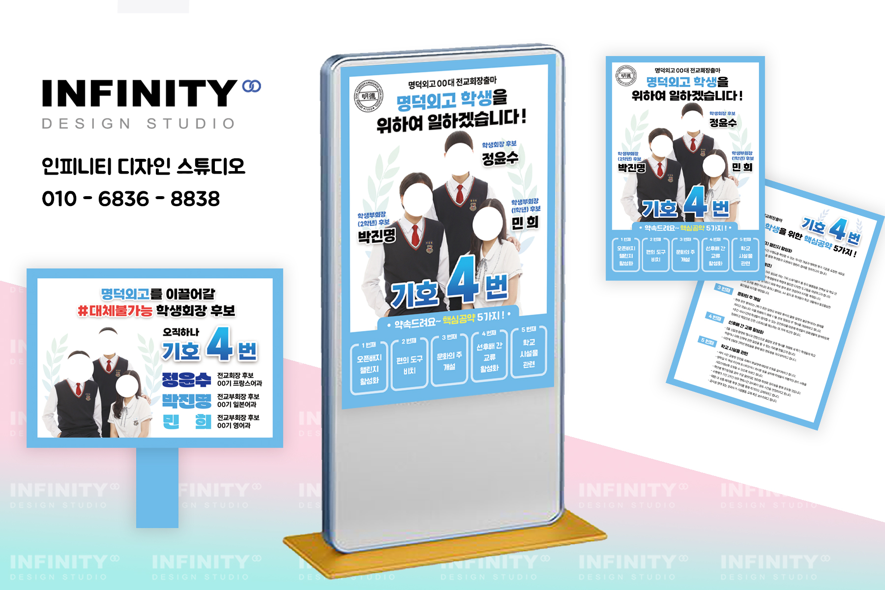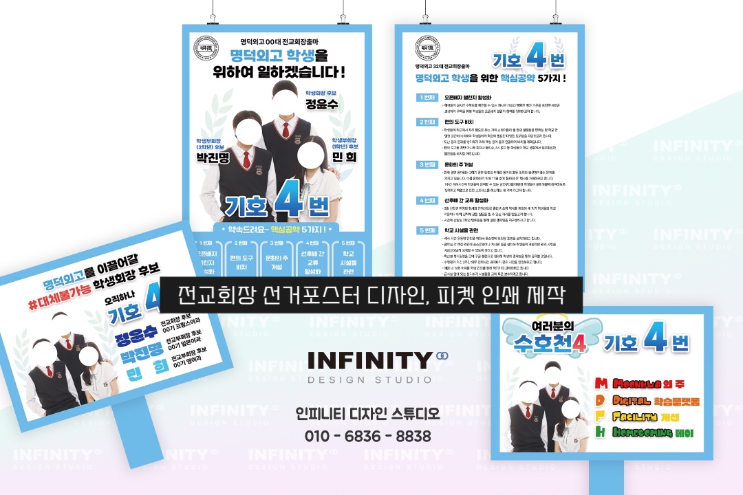 안녕하세요, 학생회장, 전교회장선거포스터, 피켓 제작, 디자인 전문인피니티 디자인 스튜디오 입니다. 오늘은 전교회장 선거 포스터 + 인쇄 제작세트 진행 소식 포스팅 드립니다 전교회장