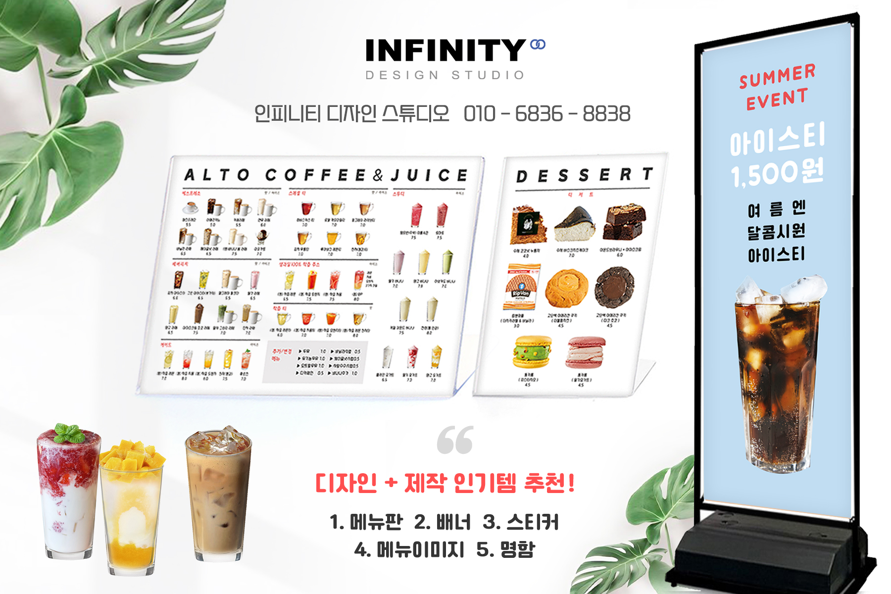 매장 메뉴액자, 포스터, 메뉴판, 배너, 리플렛,