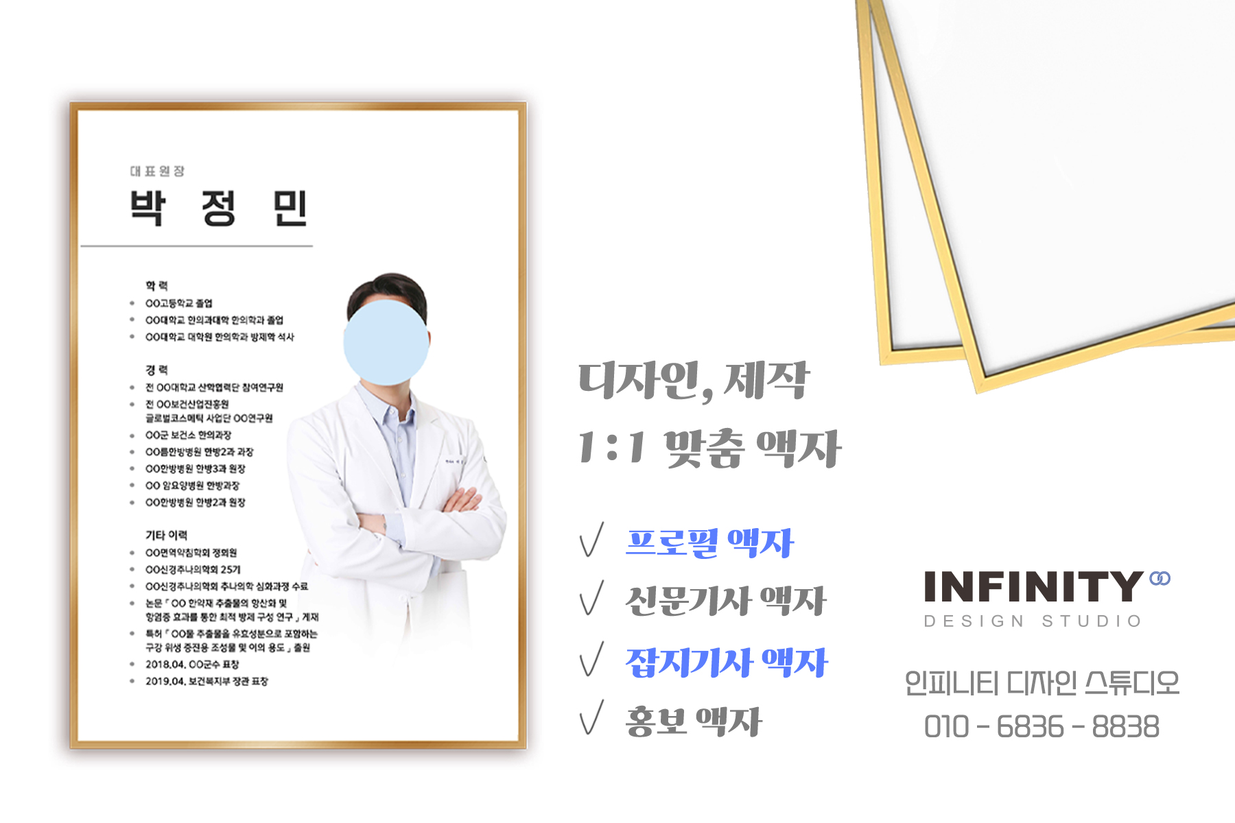 | 원장 프로필 액자 제작, 정형외과 의사 프로필 제작, 프로필액자 디자인 (1) | 2024.08.24 |