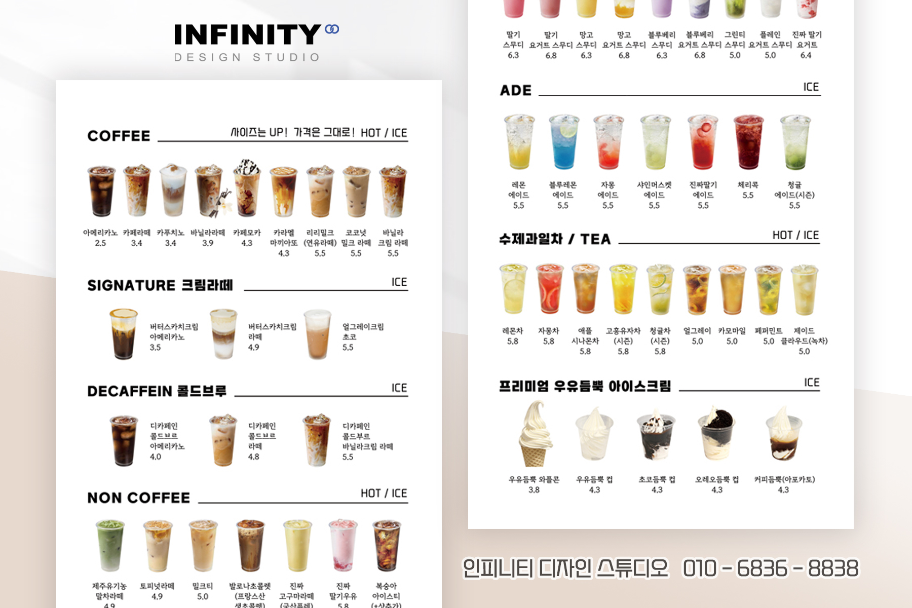 안녕하세요, 디자인, 제작 전문인피니티 디자인 스튜디오 입니다.오늘은 메뉴 포스터 디자인 소식포스팅 드립니다 ! 커피 / 스무디 등 음료 홍보 포스터와떡볶이, 아이스크림 포스터 등다양한