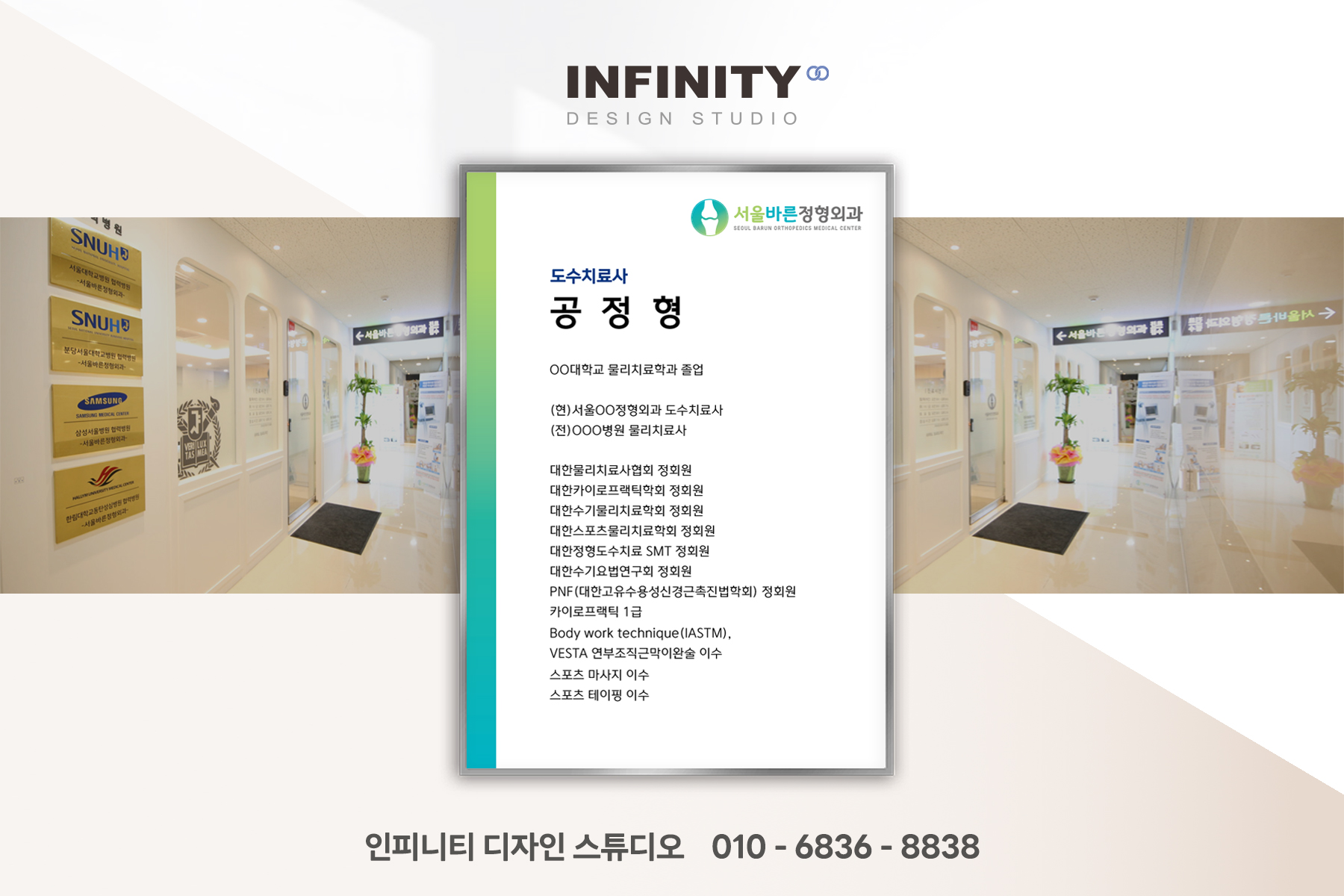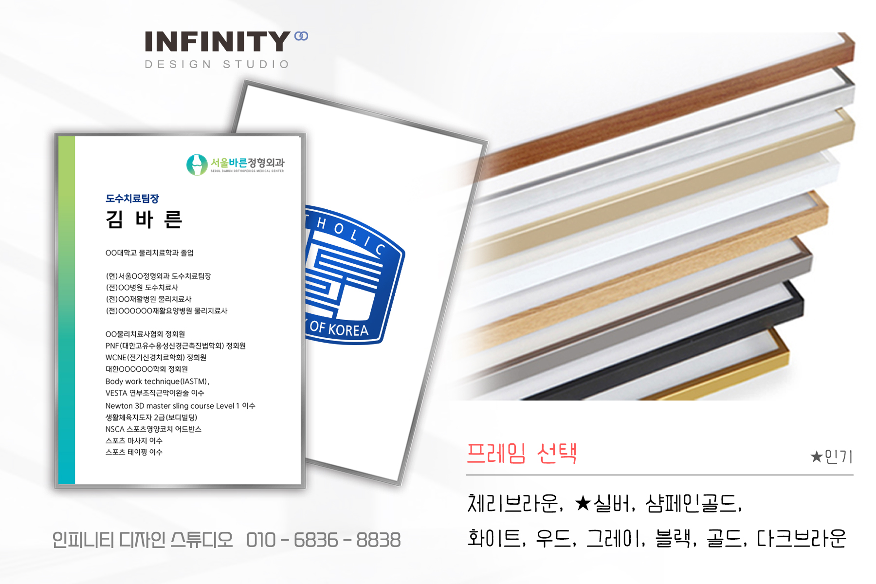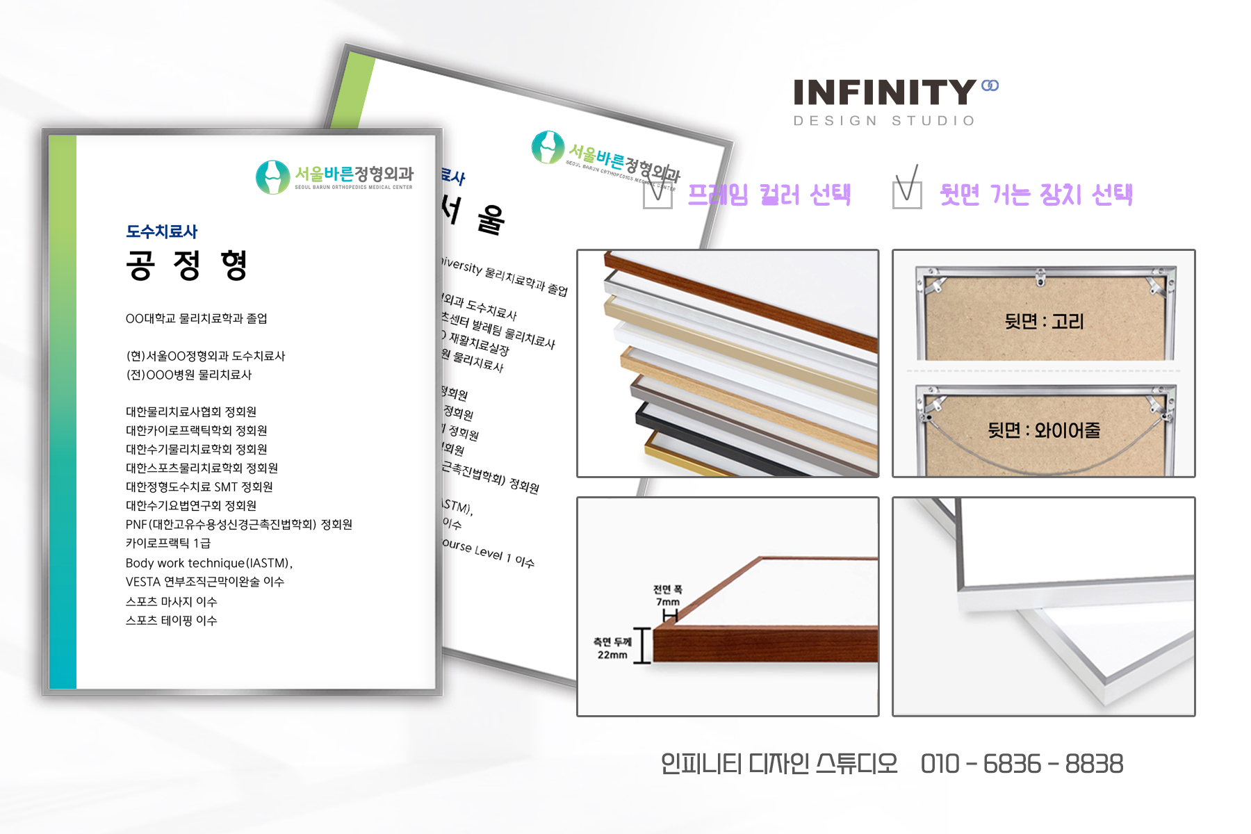 안녕하세요, 디자인, 제작 전문인피니티 디자인 스튜디오 입니다. 오늘은 병원 원장님 프로필 액자 제작소식 포스팅 준비했습니다 :) 원장 프로필 액자 제작, 정형외과 의사 프로필 제작
