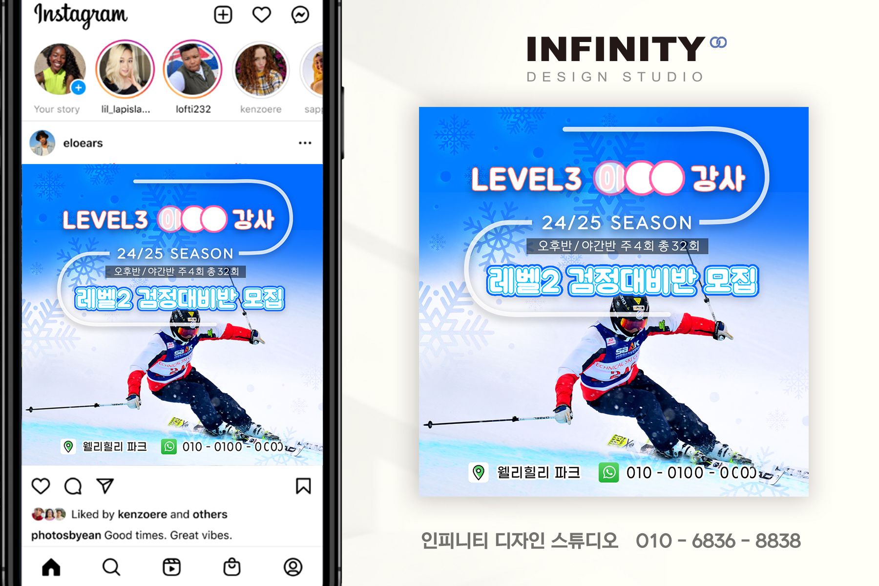스키장 강사 강습 홍보 게시물로 의뢰해주셔서