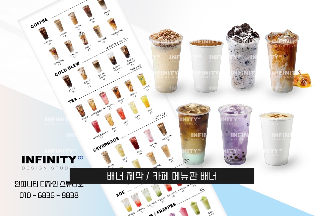안녕하세요, 디자인, 제작 전문인피니티 디자인 스튜디오 입니다.오늘은 카페 배너 제작 소식 포스팅준비했습니다. 함께 보실까요!? 카페 배너 제작, 음료 사진 배너,카페 메뉴판 배너 추천