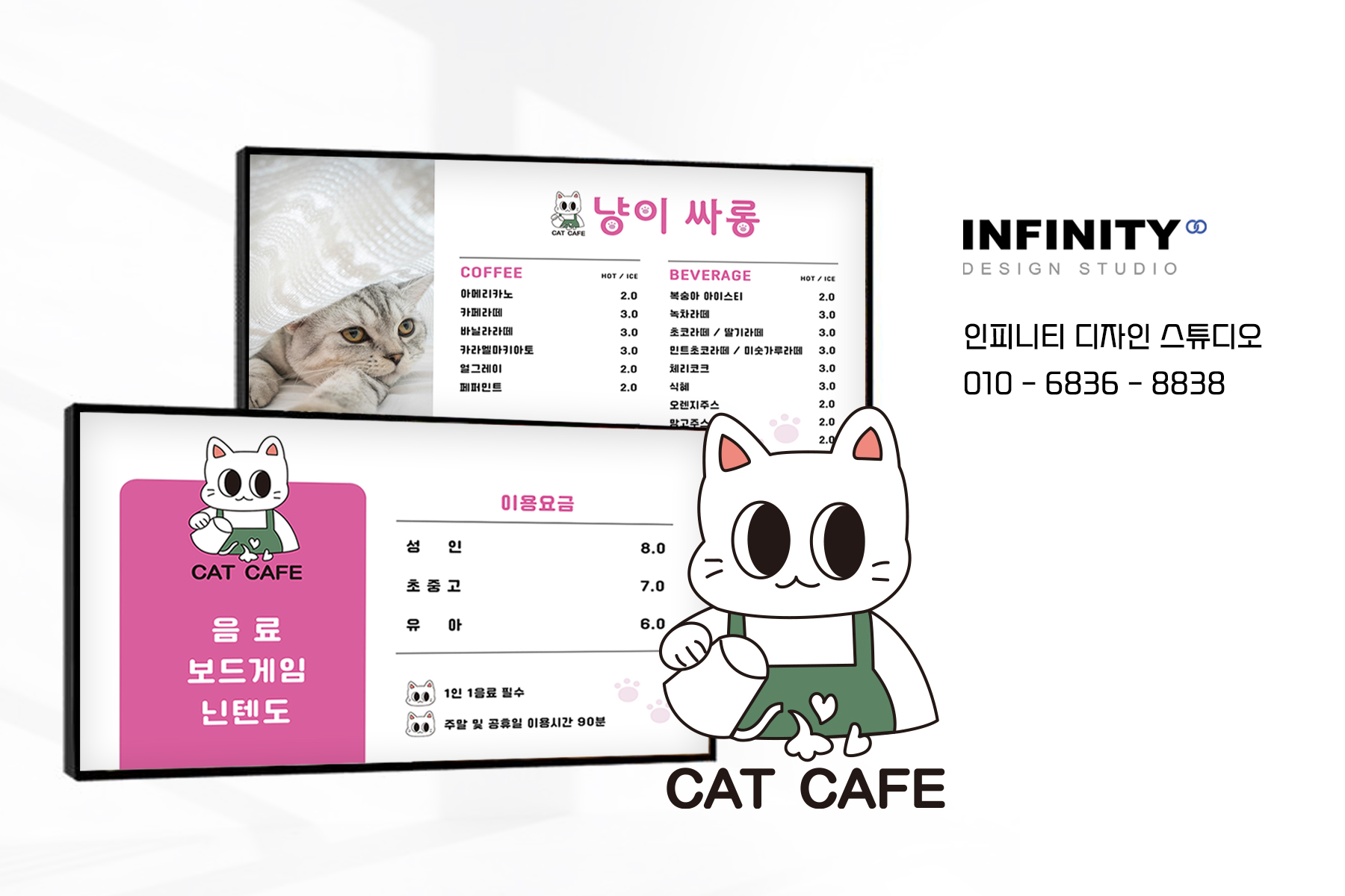 액자 메뉴판, DID 메뉴판, LED 메뉴판 디자인 등