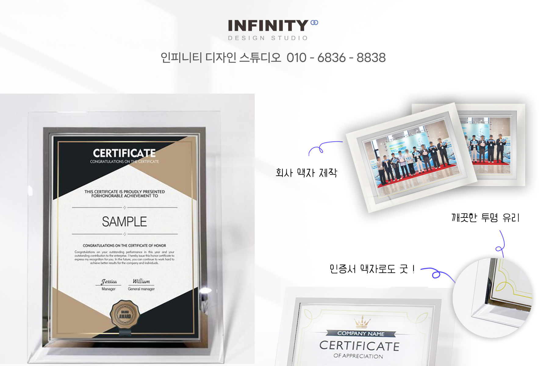 액자 제작 외에도 다양한 품목, 홍보물 진행