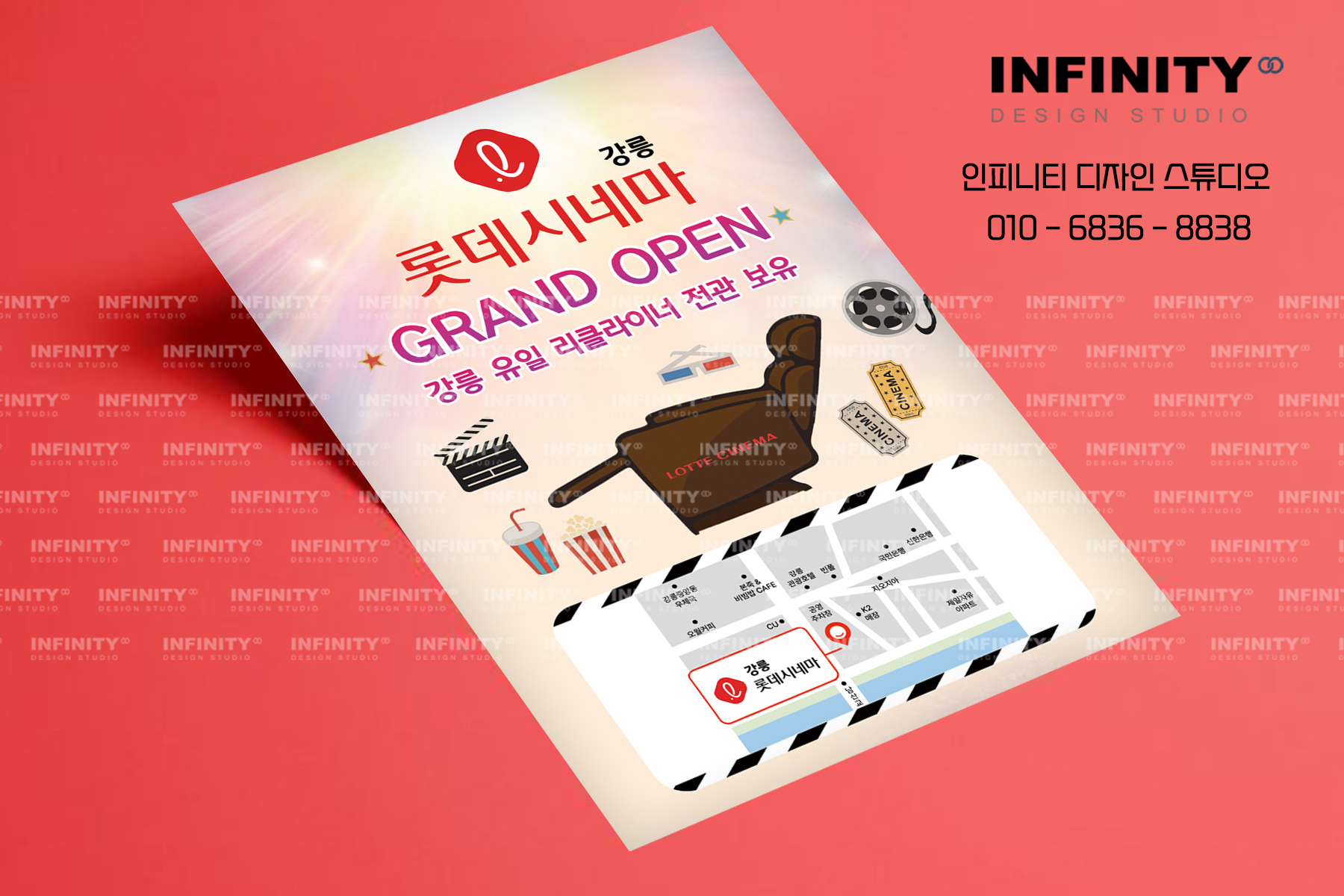 안녕하세요, 홍보물 디자인, 제작 전문인피니티 디자인 스튜디오 입니다. 오늘은 롯데시네마 신규지점 오픈 준비로홍보에 필수인 품목을디자인 + 제작 의뢰해주셨습니다.포스팅 함께 보실까요