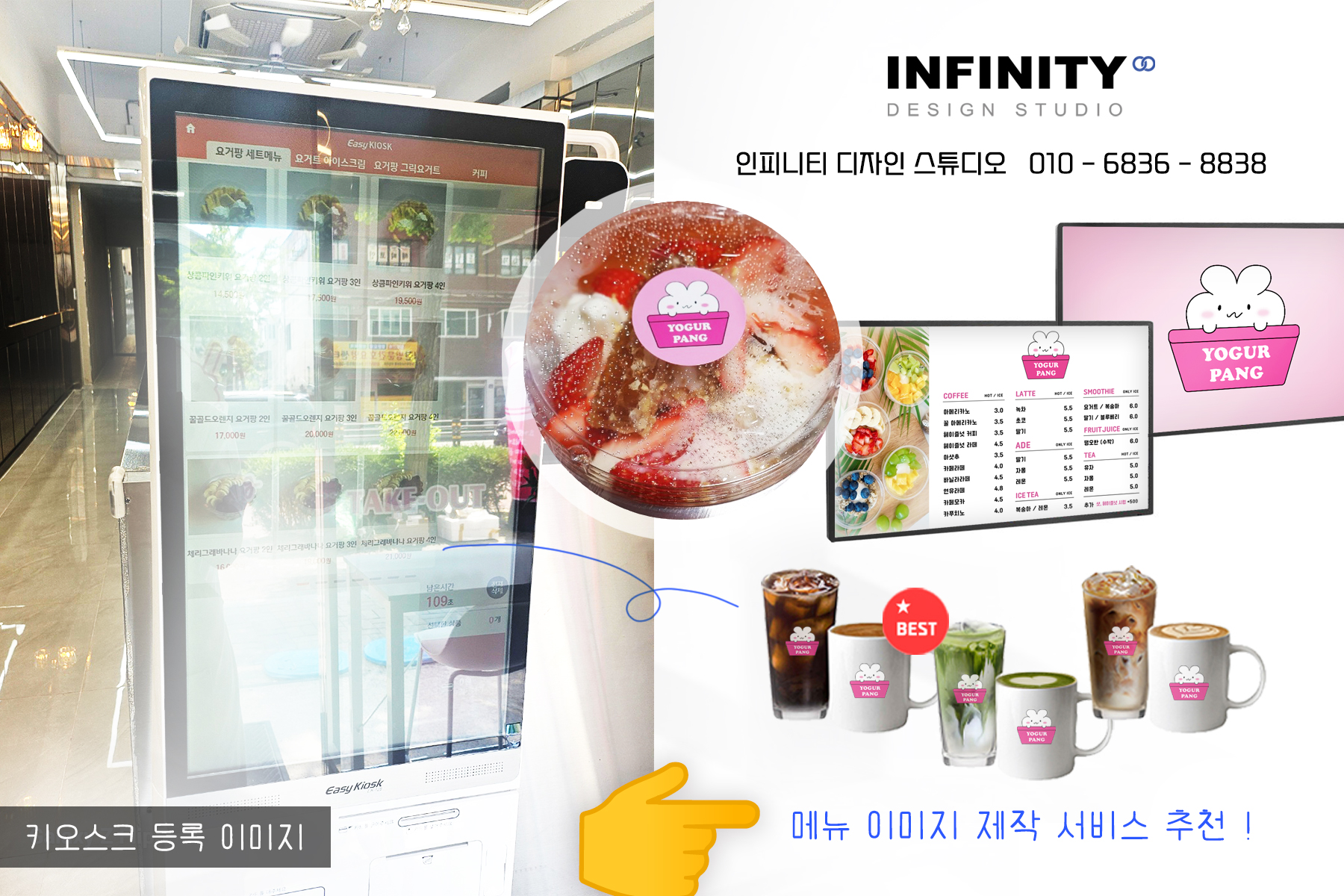 안녕하세요, 디자인, 제작 전문인피니티 디자인 스튜디오 입니다.오늘은 카페 키오스크 메뉴 사진 세트제작 소식 포스팅 드립니다 :) 키오스크 운영이 대세인 요즘 카페 !제일 먼저 필요한 것이