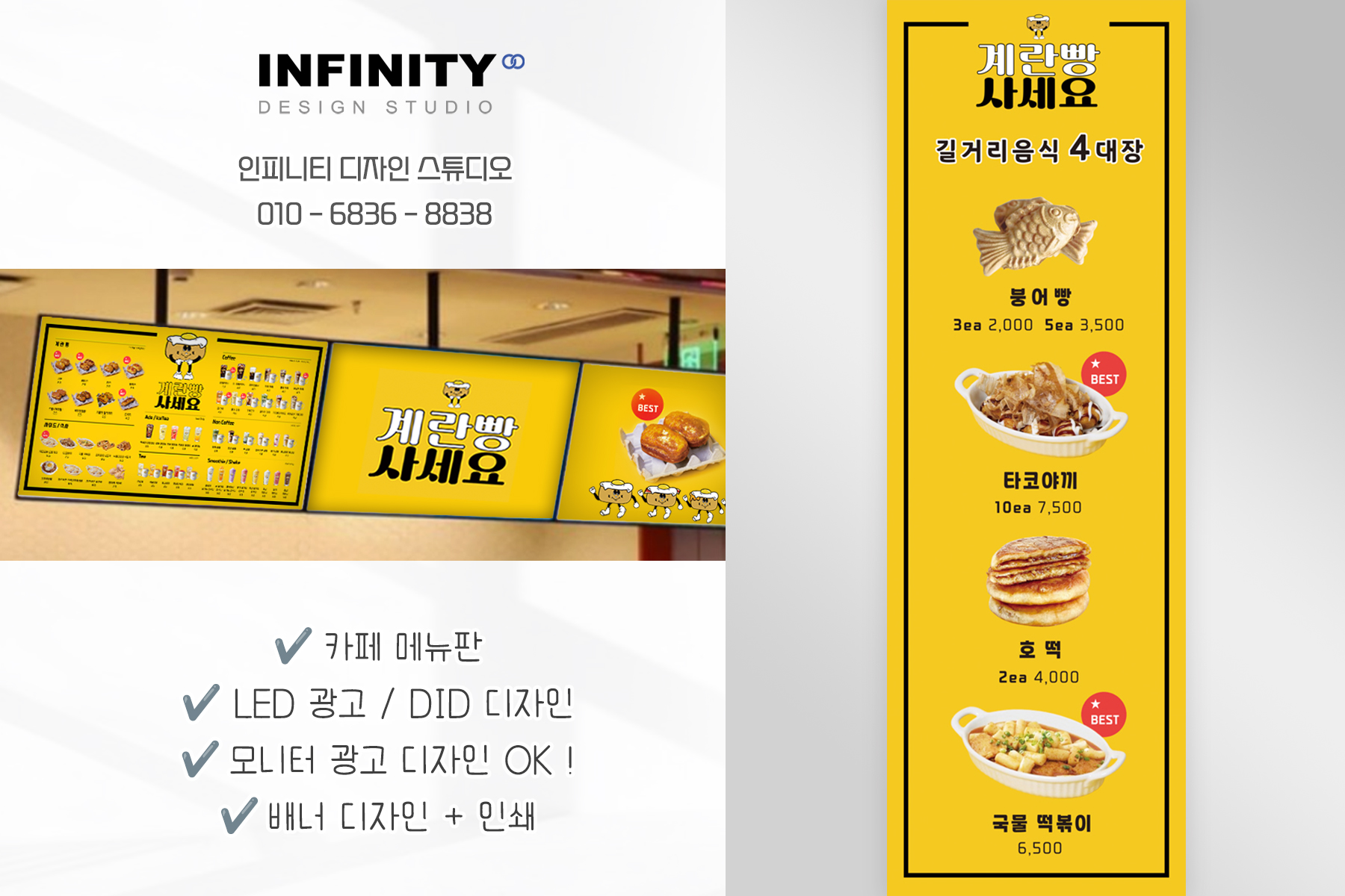 배너, 메뉴판, 포스터, 등 다양한 품목