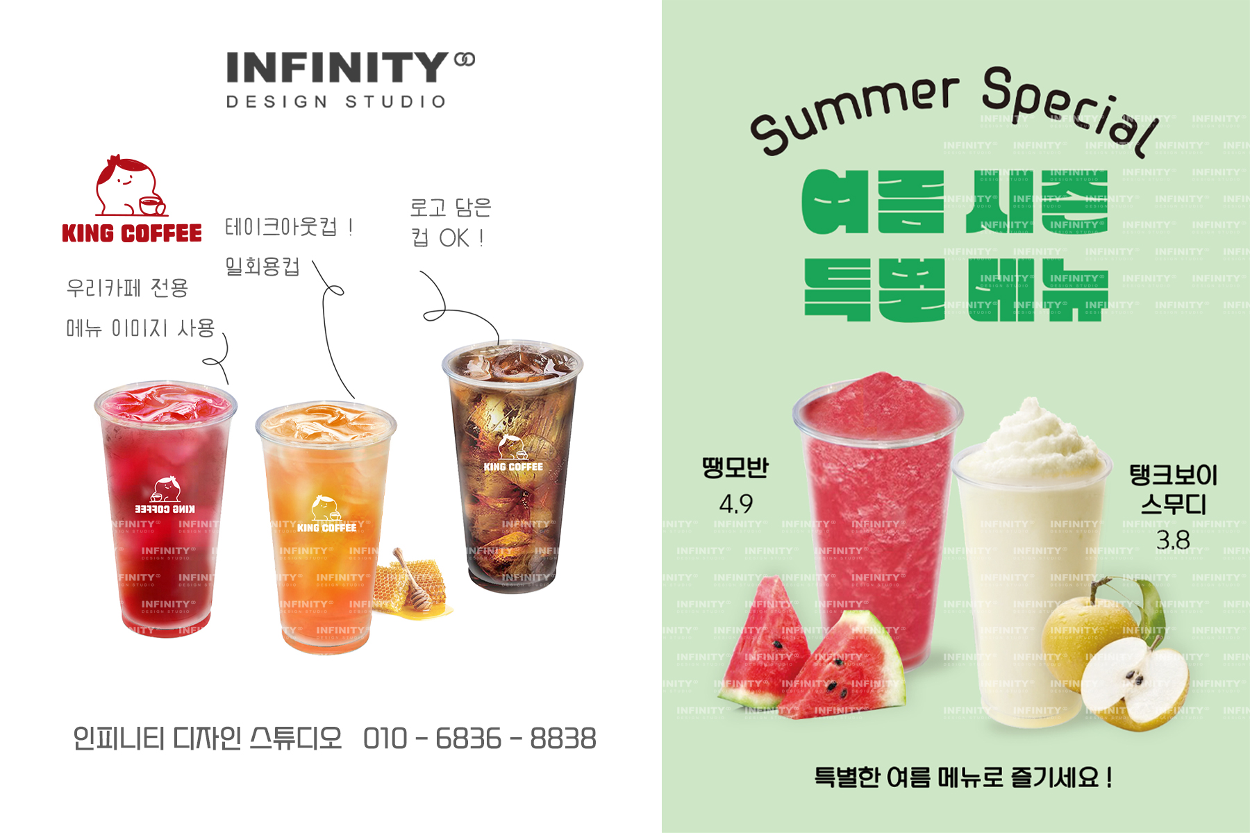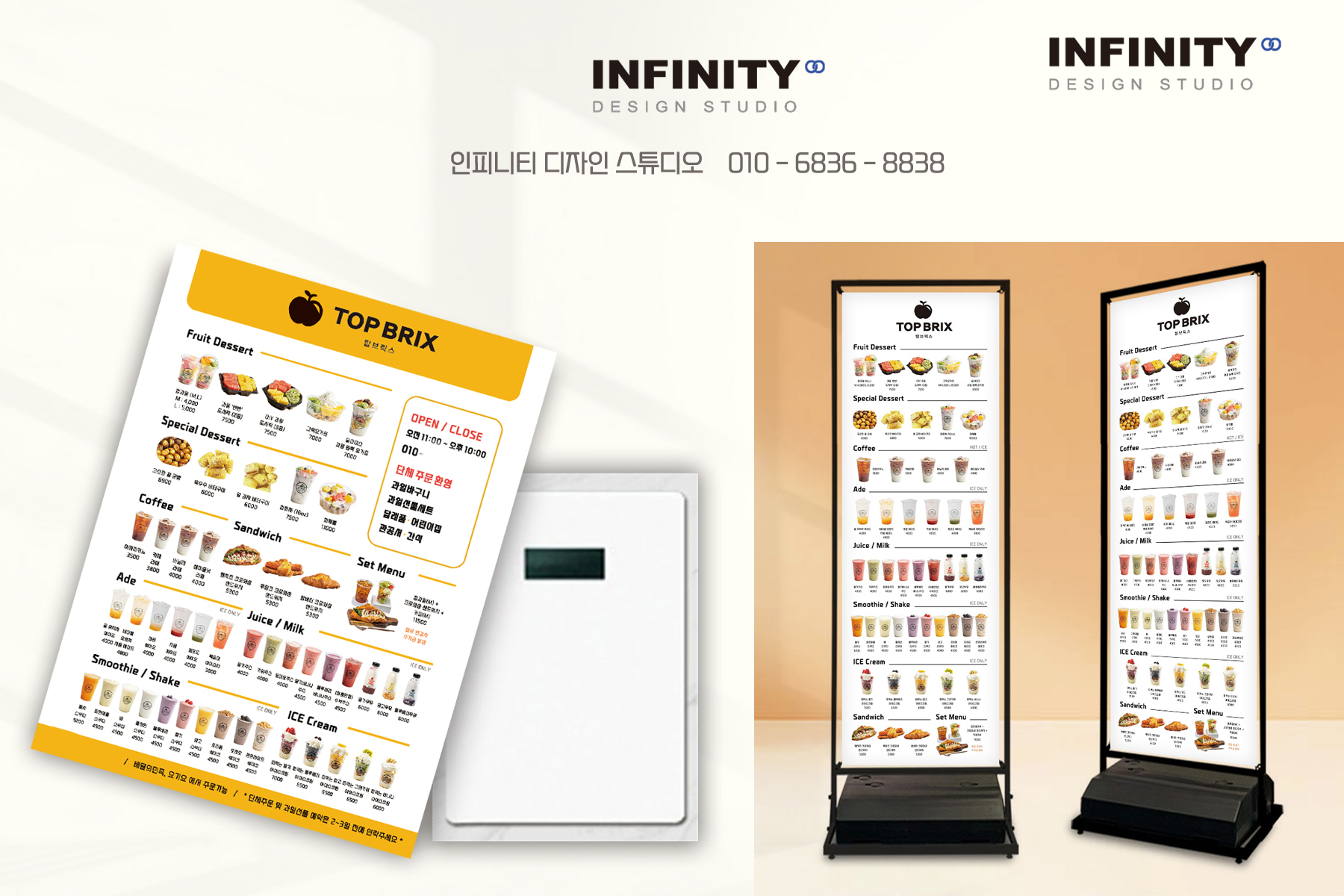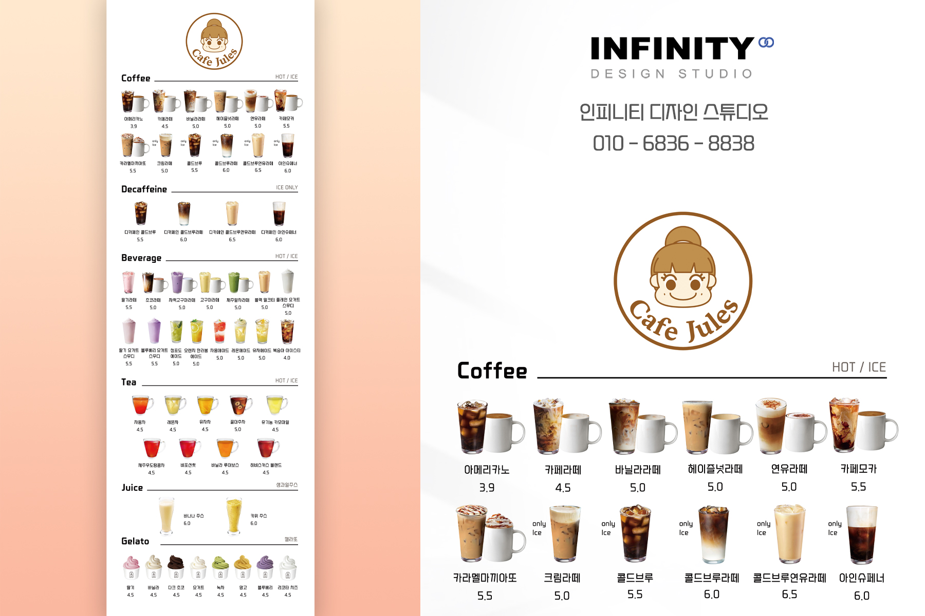 안녕하세요, 디자인, 제작 전문인피니티 디자인 스튜디오 입니다. 오늘은 카페 배너, 메뉴판 제작 소식포스팅 드립니다 :) 깔끔하게 정리된 메뉴판!우리카페 메뉴 소개와 메뉴, 가격 안내를한