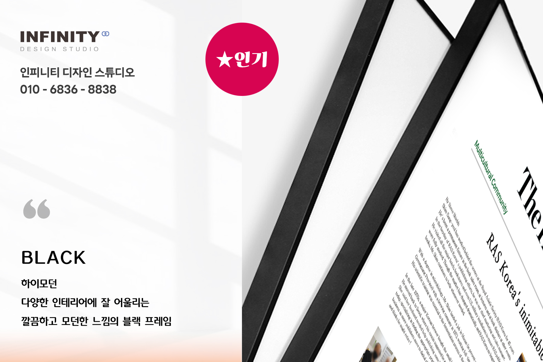 | 신문기사 액자 제작, 기업 사무실 맞춤 액자 디자인, 제작 후기 (1) | 2024.11.02 |
