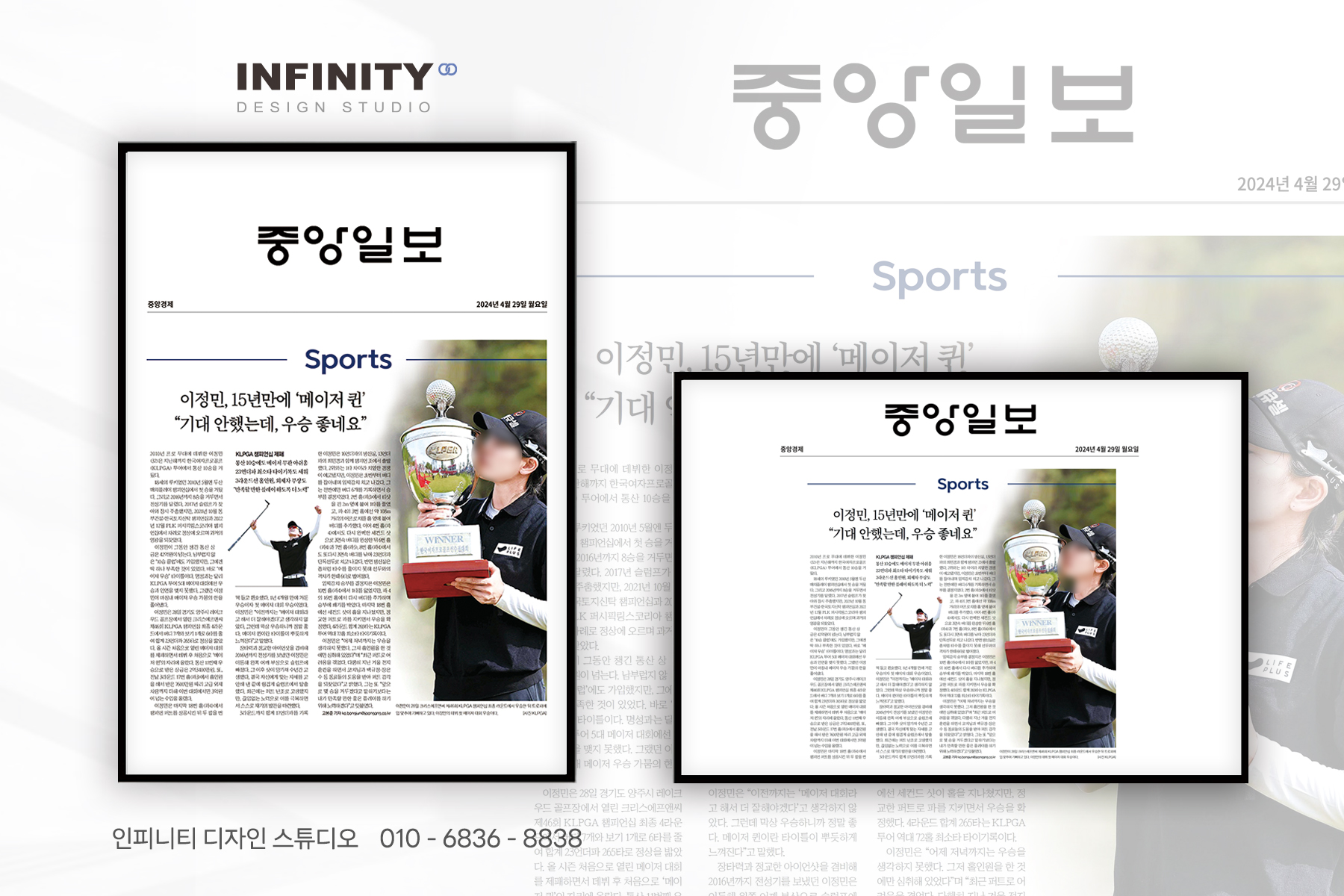 안녕하세요, 액자 제작,기업홍보물 디자인, 제작 전문인피니티 디자인 스튜디오 입니다. 오늘은 강남에 위치한 스포츠 기업 액자제작문의로 진행된 프로골프 우승 신문기사액자 제작 소식 포