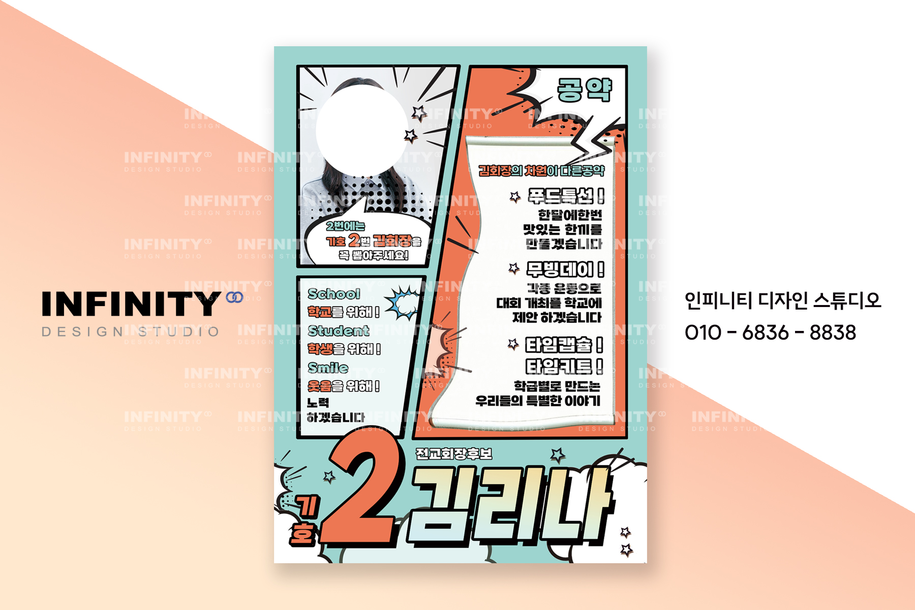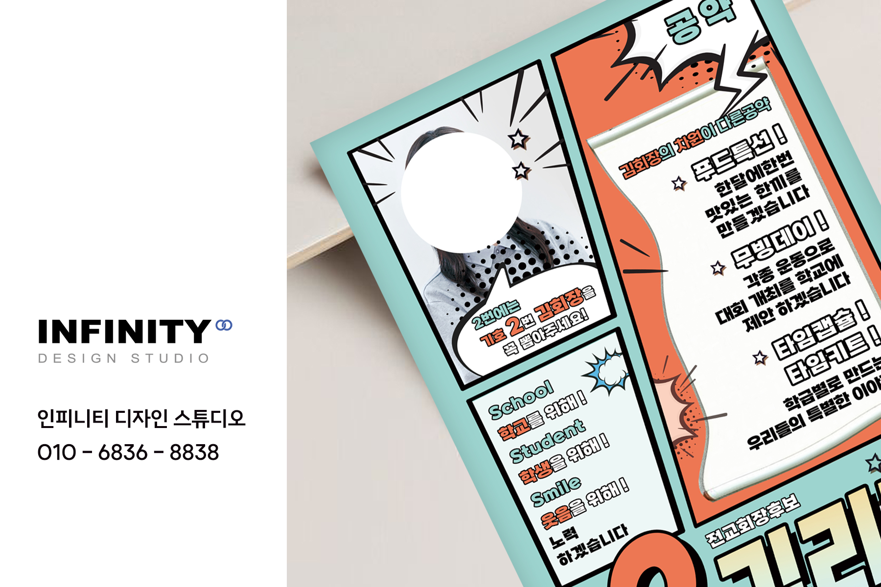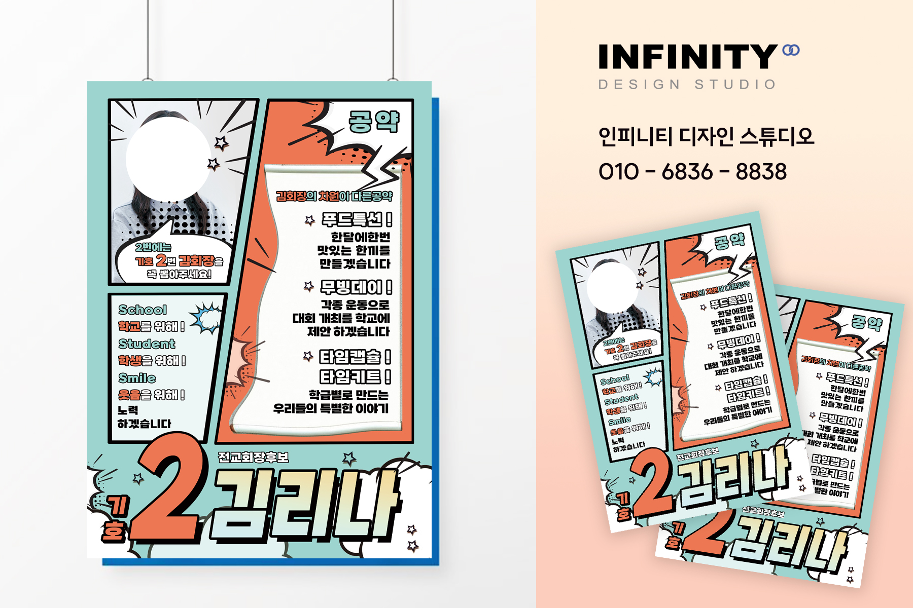 안녕하세요, 디자인, 제작 전문인피니티 디자인 스튜디오 입니다.오늘은 전교회장 선거포스터, 피켓 제작 소식포스팅 준비했습니다 :) 학생회장 선거 / 부회장 선거 포스터, 피켓제작으로 진