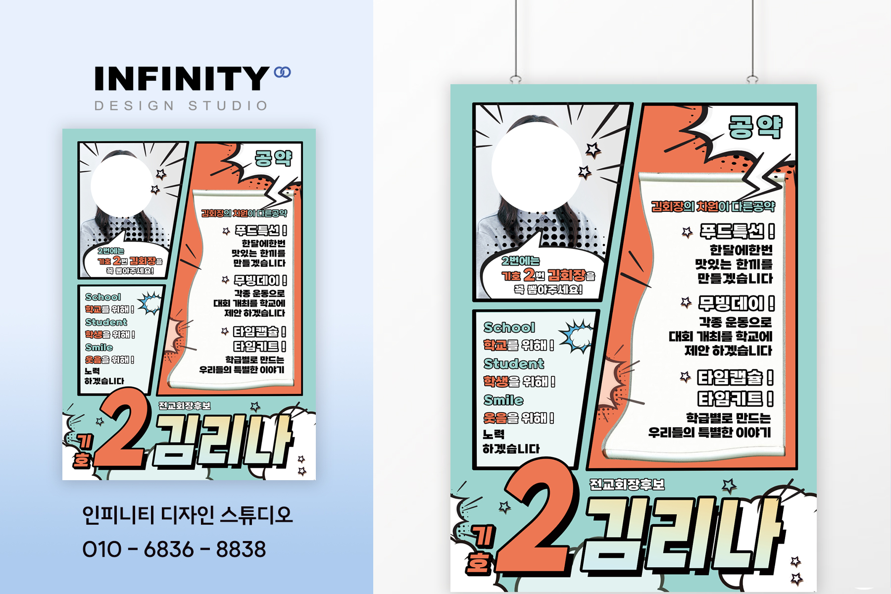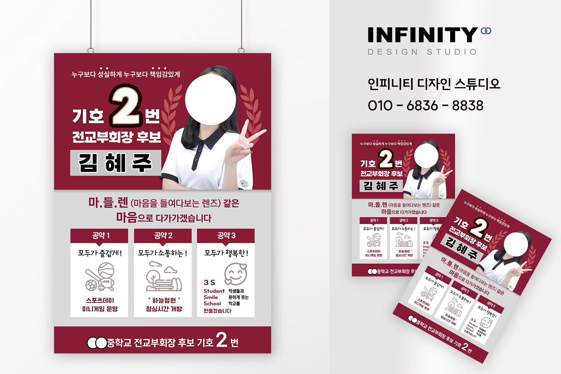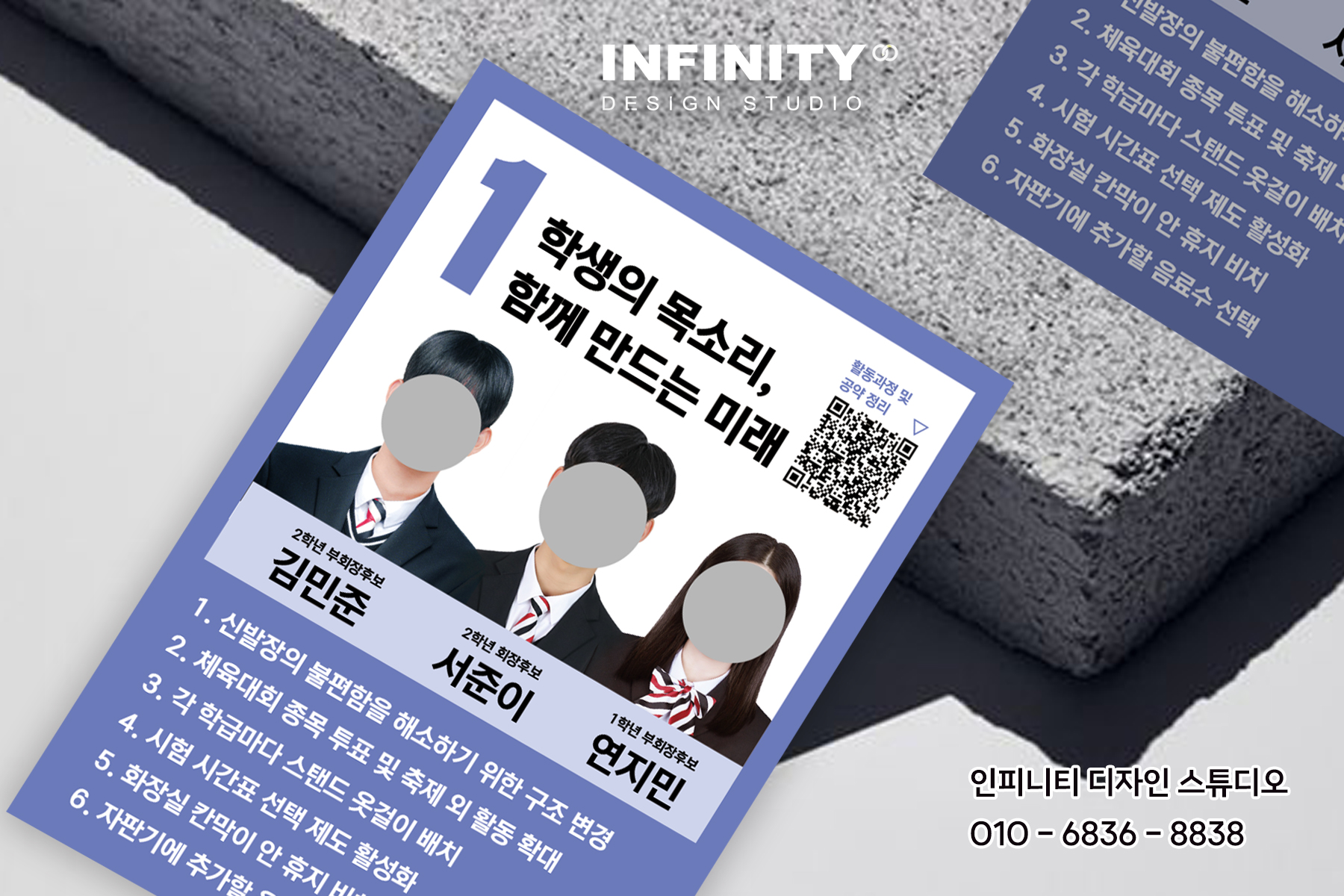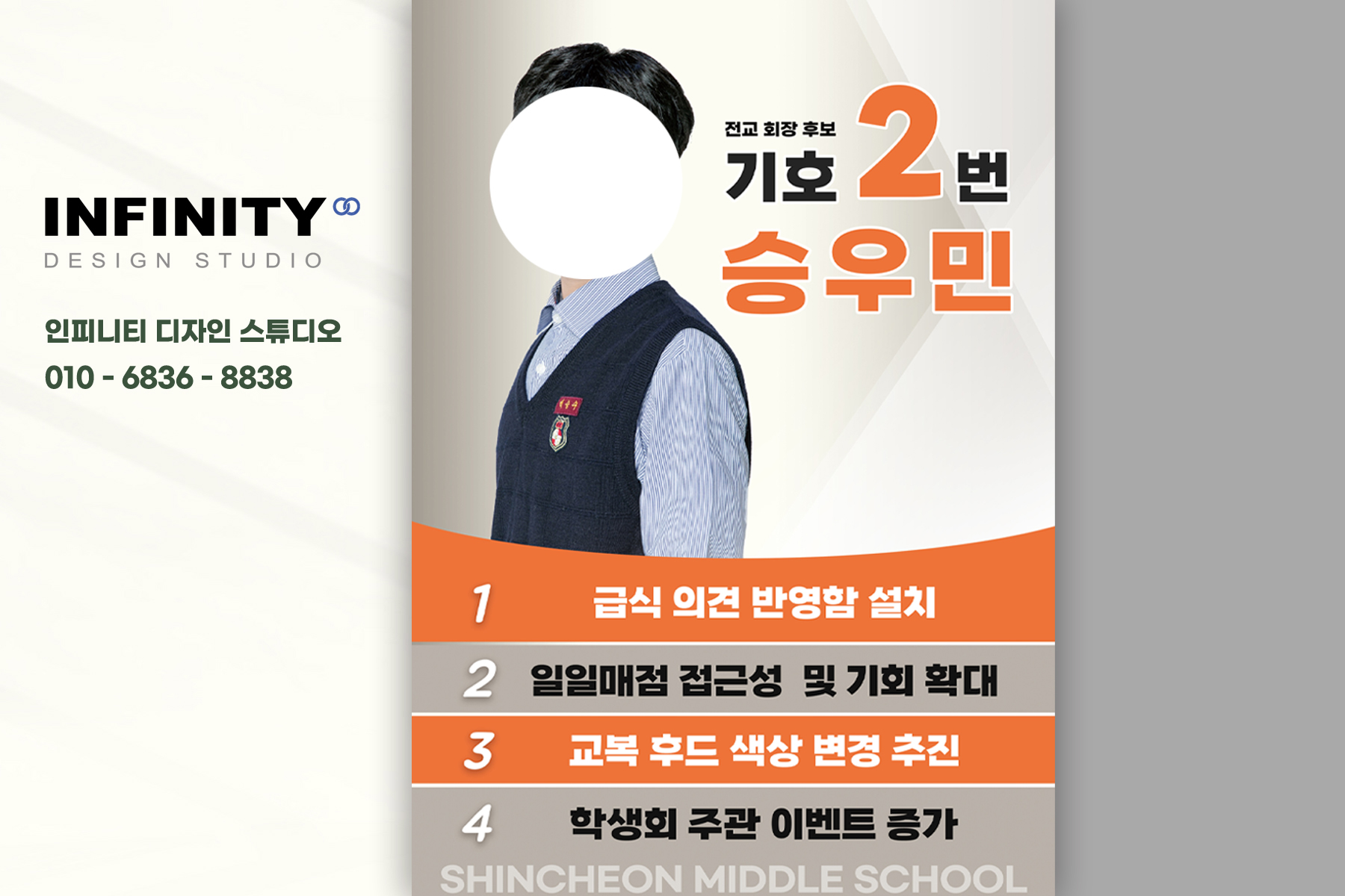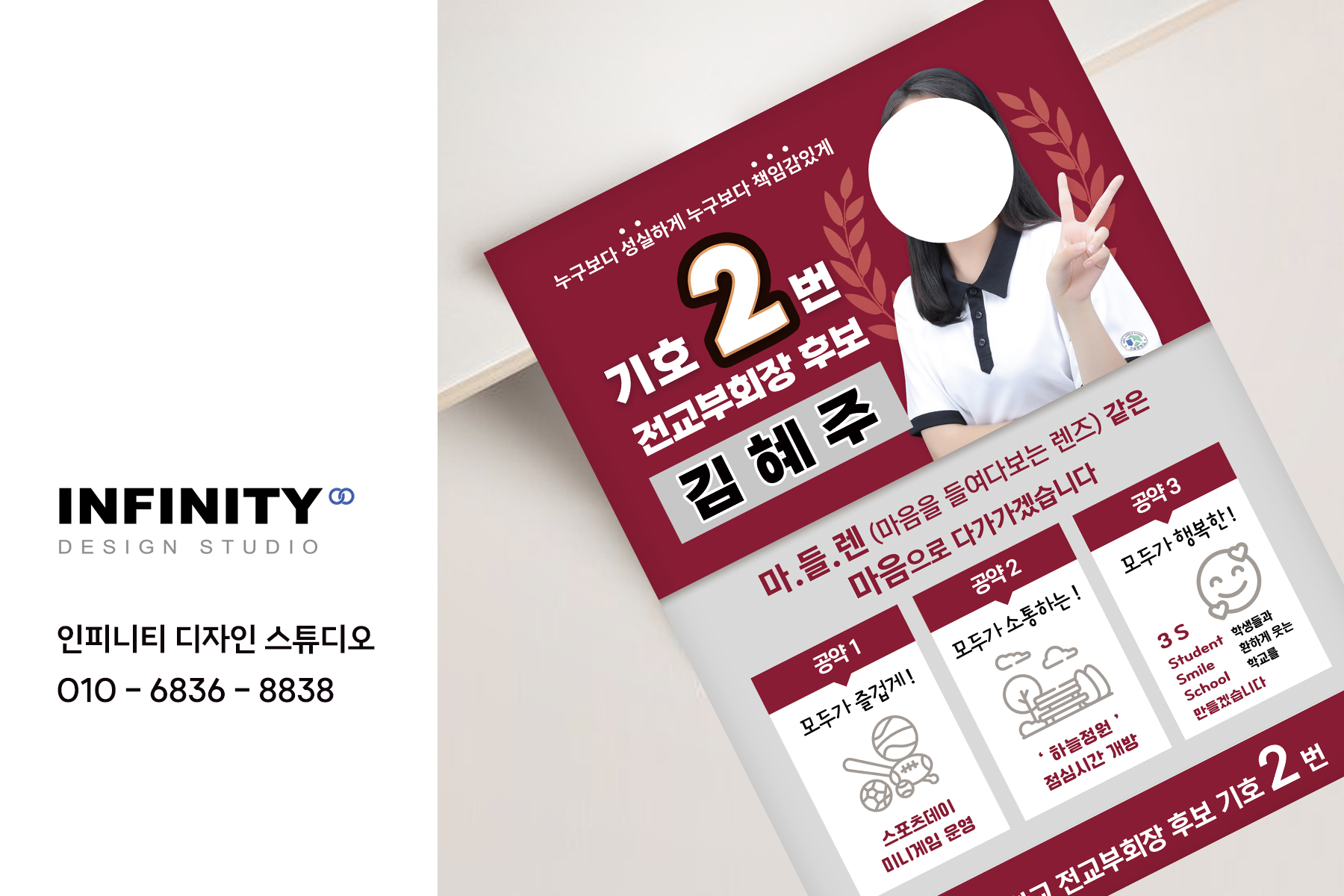 안녕하세요, 학생회장, 전교회장선거포스터, 피켓 제작, 디자인 전문인피니티 디자인 스튜디오 입니다. 오늘은 전교회장 선거 포스터 + 인쇄 제작세트 진행 소식 포스팅 드립니다 전교회장