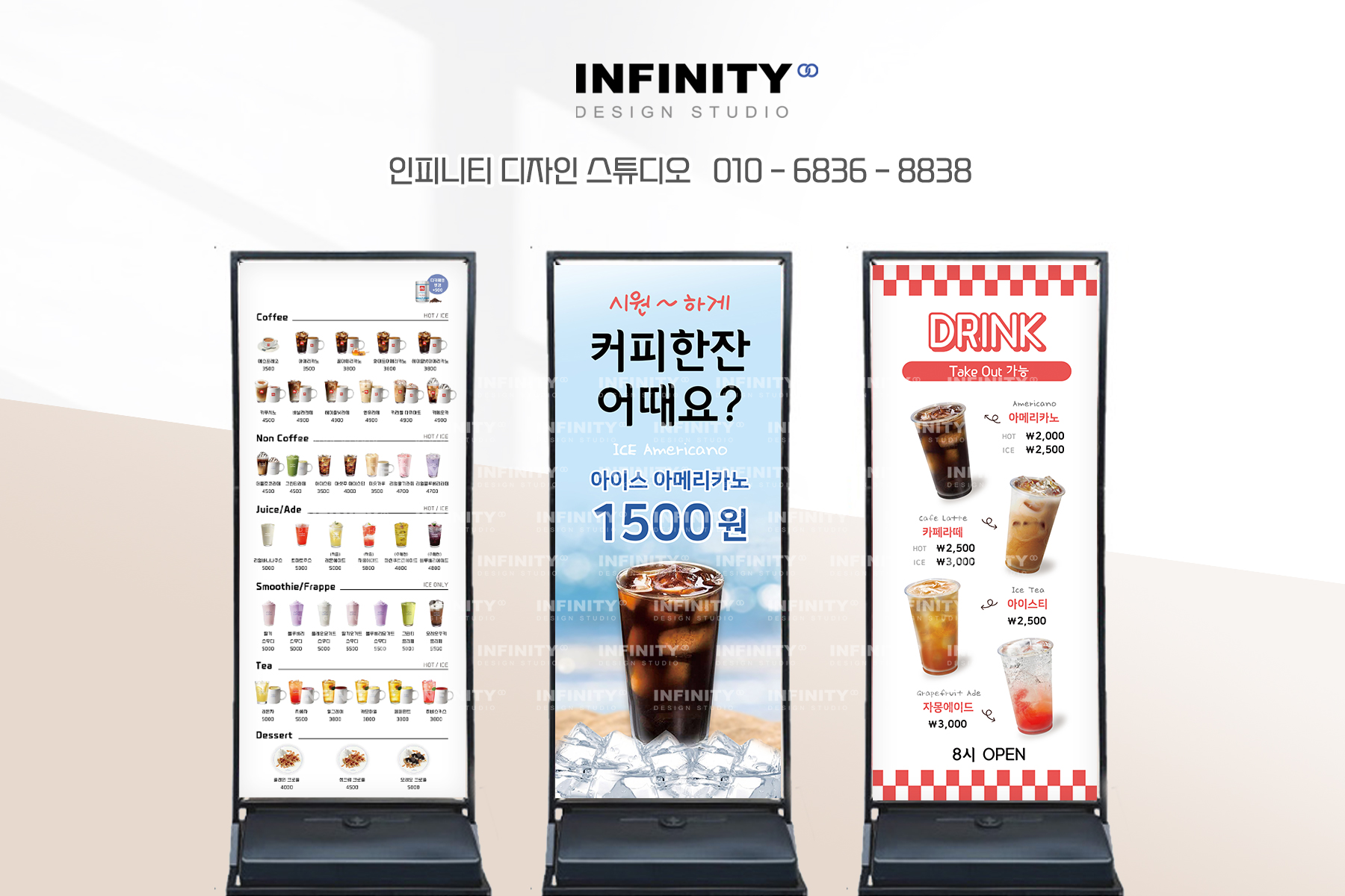 카페 메뉴판, 배너, DID, 시트지, 스티커 디자인, 제작, 카페오픈준비 추천