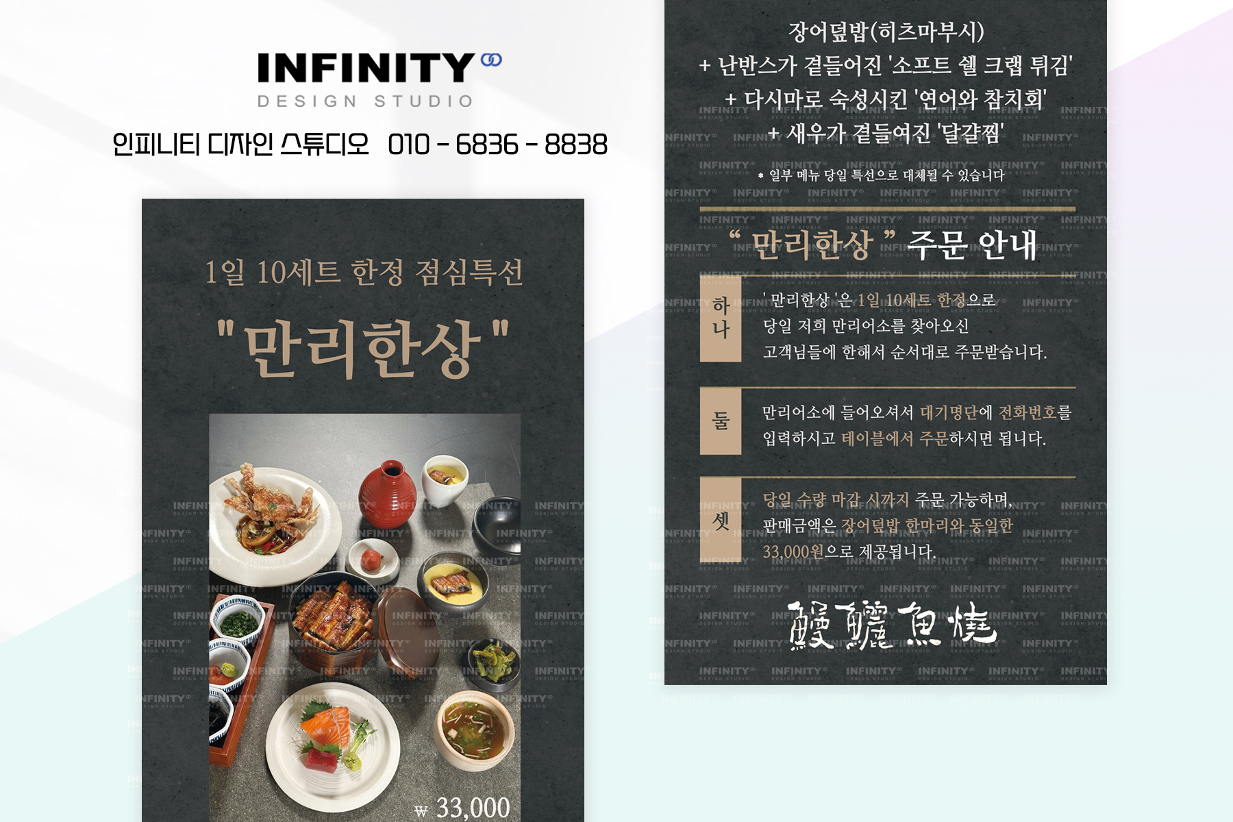 안녕하세요, 디자인, 제작 전문인피니티 디자인 스튜디오 입니다. 오늘은 일식 메뉴판 디자인, 제작 소식포스팅 드립니다 :) 장어요리 전문점에서 의뢰해주신메뉴판 디자인, 인쇄 제작으로 진