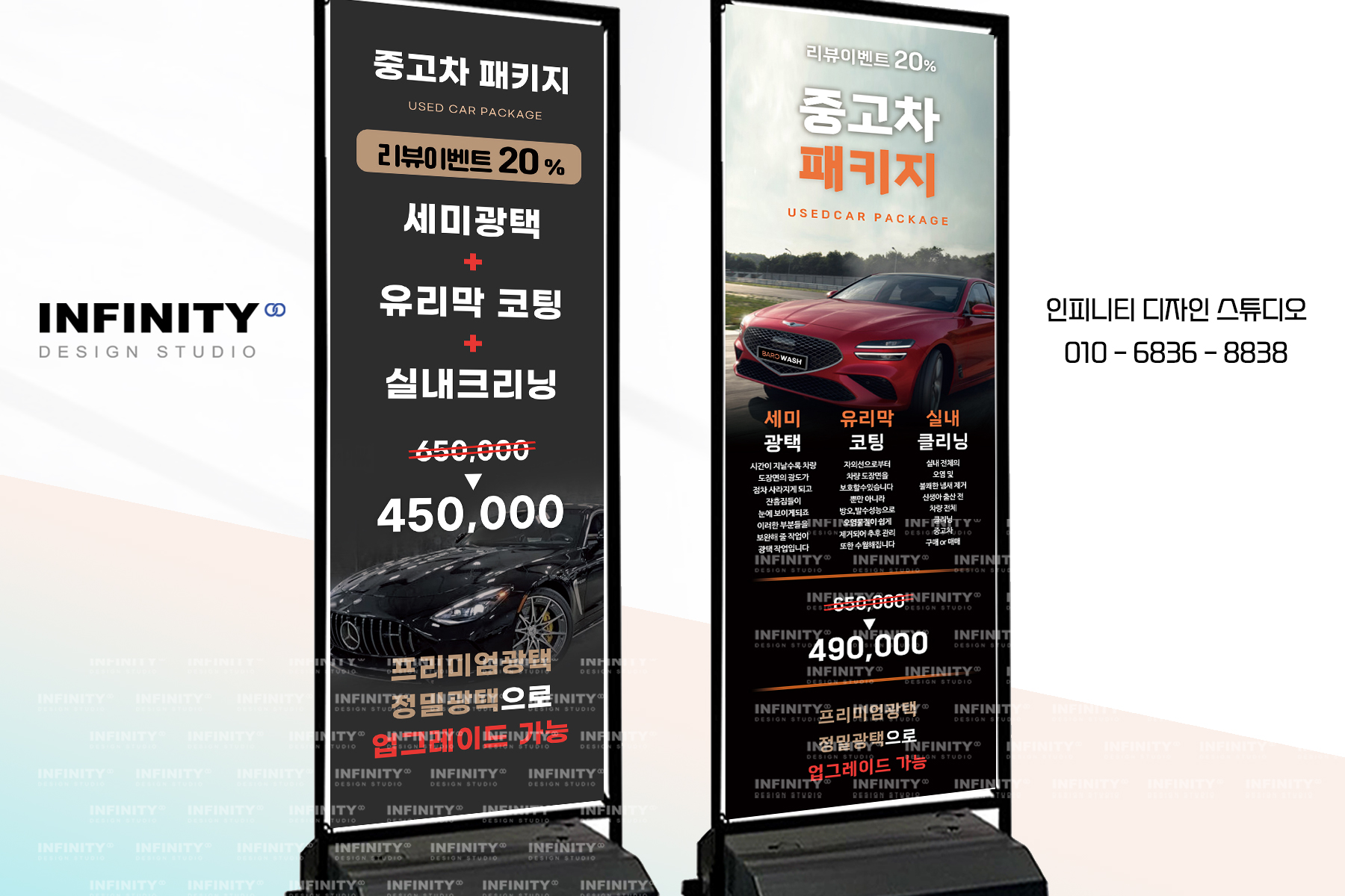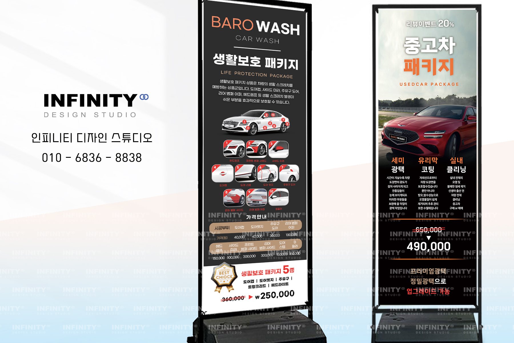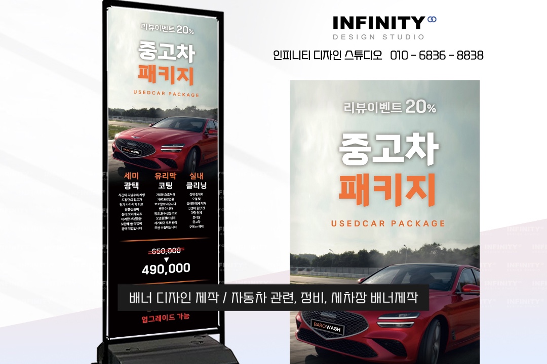 안녕하세요, 디자인, 제작 전문인피니티 디자인 스튜디오 입니다. 오늘은 카센터 배너, 세차장 배너 제작소식 포스팅 드립니다 :) 깔끔한 디자인으로 패키지 소개와가격 안내를 할 수 있는 배