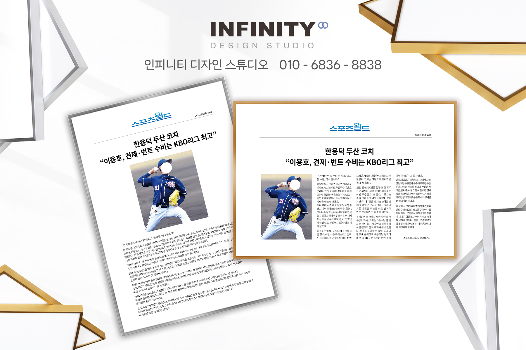 안녕하세요, 액자 제작,기업홍보물 디자인, 제작 전문인피니티 디자인 스튜디오 입니다. 오늘은 강남에 위치한 스포츠 기업 액자제작문의로 진행된 프로골프 우승 신문기사액자 제작 소식 포