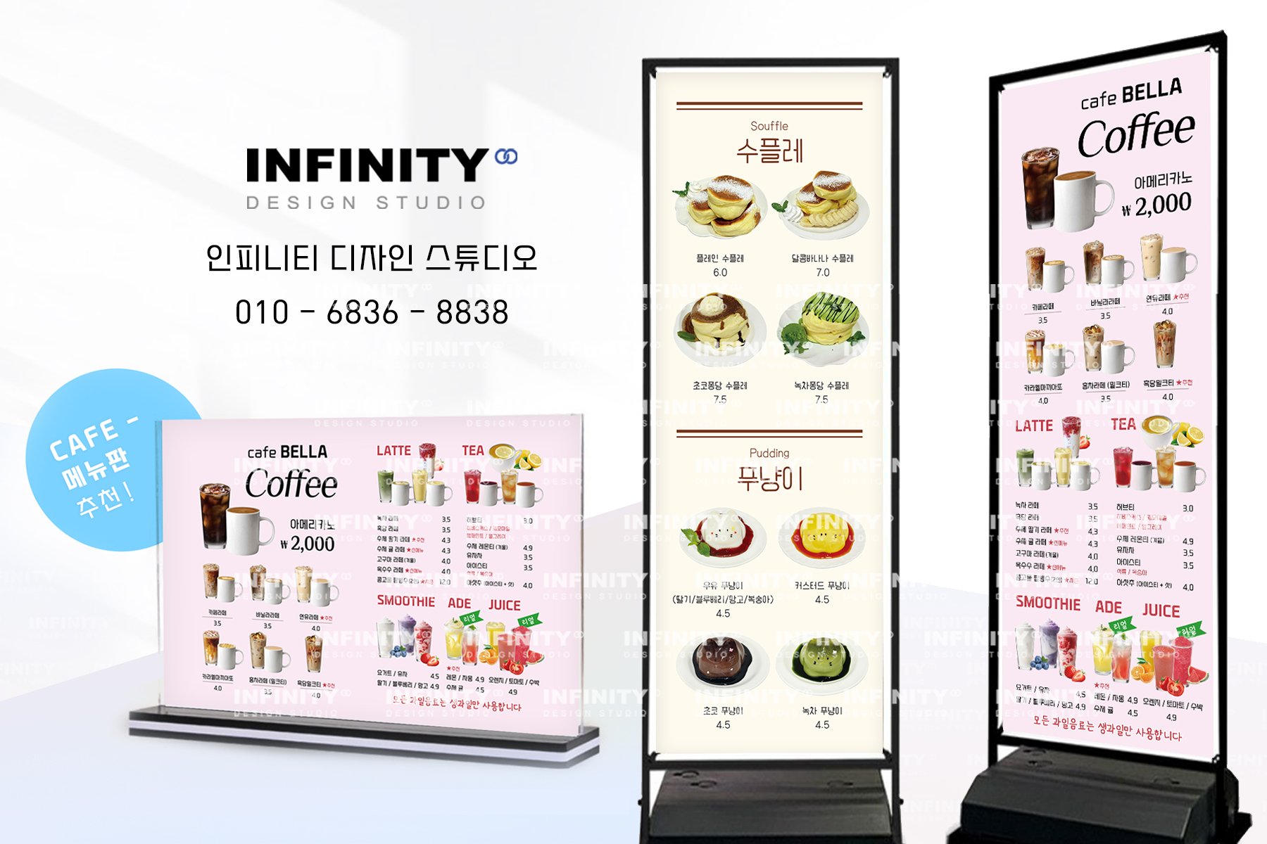 안녕하세요, 디자인, 제작 전문인피니티 디자인 스튜디오 입니다. 오늘은 카페 메뉴판 배너, 아크릴 메뉴판디자인 + 제작 소식 포스팅 드립니다 베이커리 카페 배너 + 메뉴판세트 SET 제작 인