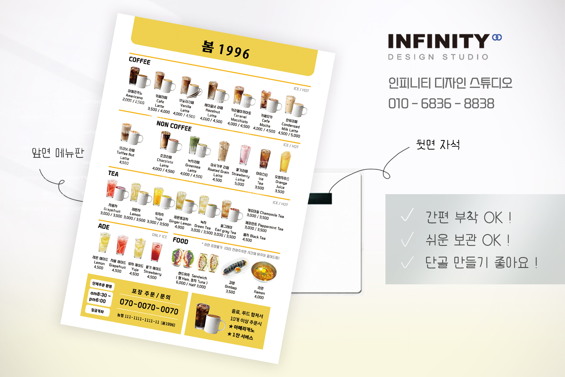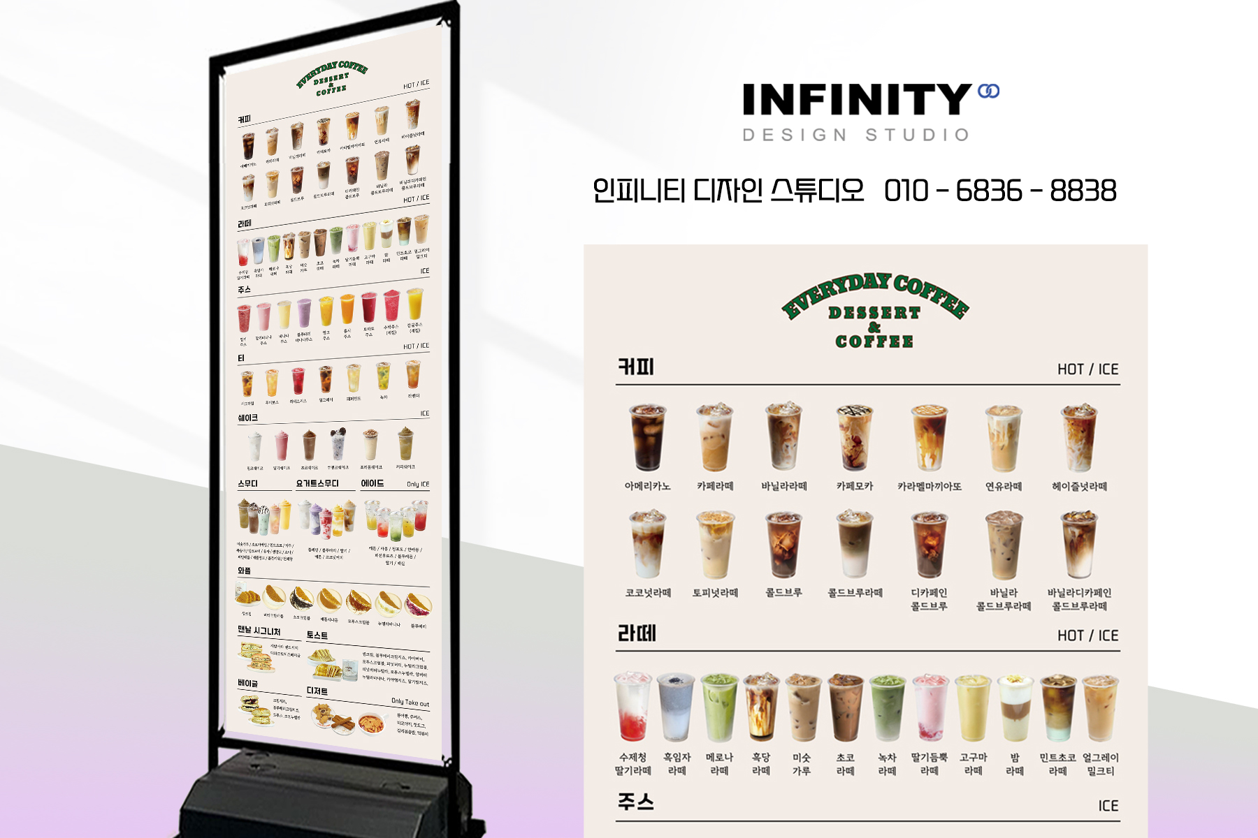 안녕하세요, 디자인, 제작 전문인피니티 디자인 스튜디오 입니다.오늘은 호텔 카페 오픈 준비로 의뢰해주신홍보물 세트 진행 소식 포스팅 드립니다. DID 메뉴판 디자인메뉴판 배너 디자인, 인